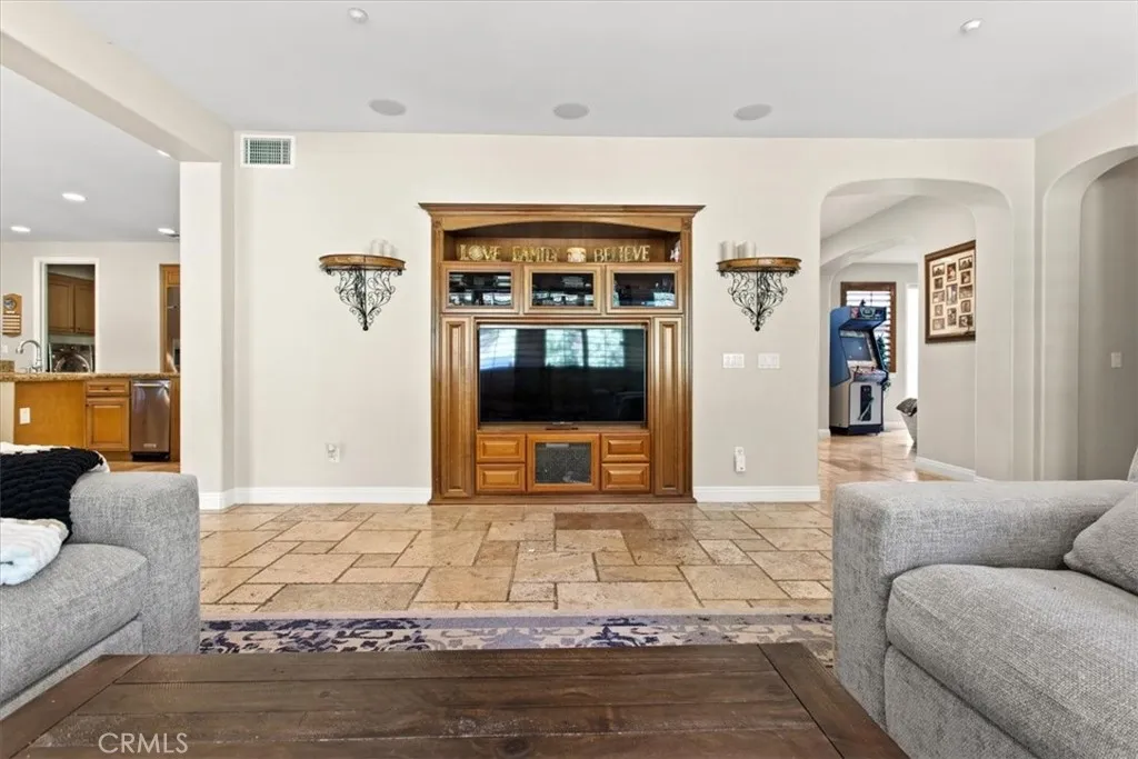 Welcome to Castlewood at Big Sky, one of the area’s most coveted communities—where wide-open spaces, dramatic mountain scenery, and serene natural beauty create a truly special place to call home. Backed by the stunning presence of Whiteface Mountain, this peaceful enclave offers the perfect blend of privacy, luxury, and Southern California indoor-outdoor living. Tucked away at the end of a quiet cul-de-sac and up a long private driveway, located next to open space, this exceptional property showcases breathtaking mountain and valley views, 5 spacious bedrooms, 4.5 baths, and an entertainer’s backyard that rivals a private resort. From the moment you arrive through the gated courtyard entry, you’ll appreciate the thoughtful layout—Inside, an expansive and light-filled floor plan unfolds. The formal living room, anchored by a cozy fireplace, opens to a charming courtyard with a tranquil fountain—setting the tone for relaxed elegance. A warm and inviting family room features its own fireplace, built-in entertainment center, and views of the sparkling pool beyond. Perfect for hosting, the elegant formal dining room flows seamlessly into the sun-drenched gourmet kitchen, complete with granite countertops, abundant cabinetry, a center island with sink, walk-in pantry, and a full suite of stainless steel appliances—truly a chef’s dream. The main level also includes a bedroom with a private bath, a laundry room, and a convenient powder room for guests. Up the grand staircase, the luxurious primary suite awaits—your personal retreat. This expansive haven includes a fireplace, sitting area, oversized walk-in closet with built-ins and pull down attic access with an abundance of storage area, and an additional ~250 sq ft bonus space ideal for an office, nursery, or fitness room. The spa-like primary bath completes the experience. Two additional ensuite bedrooms, a versatile loft, and a bonus room overlooking open space offer endless flexibility for today’s lifestyles. And then… the showstopper backyard. This is Southern California living at its finest: a resort-style pool and spa with rock waterfall grotto, swaying palm trees, BBQ island, lush lawn for play, and even a putting green—all beautifully set against a natural backdrop. Solar? Yes—owned with back-up batteries. There is also ample parking with a 2 car garage and a one-car garage with an attached room ideal for a hobby room or storage. Residents of Big Sky enjoy miles of walking and hiking trails.