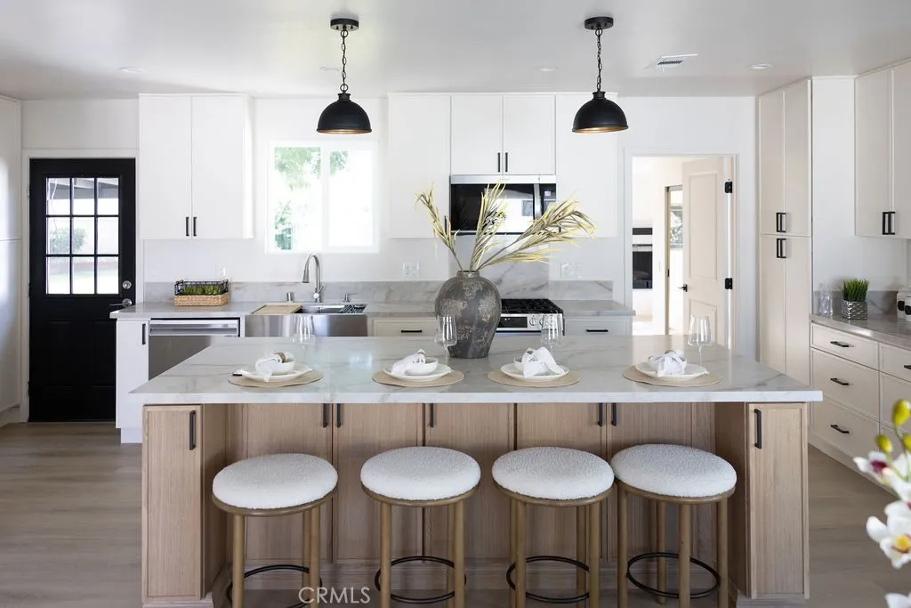 Step into a world of refined elegance and modern comfort. This beautifully reimagined Glendora residence seamlessly blends contemporary design with thoughtful upgrades, offering both peace of mind and inspired living. From the moment you enter, the home unfolds as a canvas for your ideal lifestyle—elevated, effortless, and inviting. At the heart of the home lies a breathtaking open-concept kitchen and living area, where culinary creativity and meaningful gatherings come together. The gourmet kitchen showcases sleek cabinetry, a generous island, and a layout designed for both everyday living and stylish entertaining. Natural light pours through expansive windows, creating an airy ambiance that flows seamlessly throughout the home. The primary bedroom suite is a true private retreat, spanning over 400 square feet and designed for rest and indulgence. Enjoy the warmth of your own fireplace, the luxury of a spa-inspired bathroom with a freestanding soaking tub, and the convenience of dual his-and-hers closets—your own sanctuary within the home. Three additional bedrooms offer versatile space for family, guests, or home offices, adapting beautifully to your lifestyle. Beyond the aesthetics, this home delivers confidence with major system upgrades, including a brand-new 200-amp electrical panel and new copper plumbing—ensuring modern functionality and long-term reliability. Step outside to a large, private backyard with ample room for entertaining, relaxing, or creating your dream outdoor oasis. Nestled on a quiet cul-de-sac, the home offers a rare sense of tranquility while remaining moments from Glendora’s shops, dining, and conveniences. This is more than just a home—it’s an invitation to elevate your everyday living, create lasting memories, and embrace the future you’ve envisioned. Welcome to 605 W Gaillard St, where comfort, style, and serenity come together beautifully.