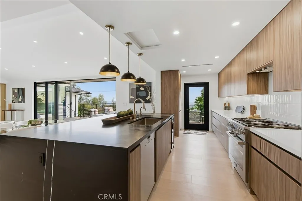 Welcome to this stunning view residence offering 4 bedrooms and 4.5 bathrooms with over 3100 square feet of thoughtfully designed living space. Completely rebuilt down to the studs, this home showcases quality craftsmanship, modern design and functional luxury throughout The expansive open floor plan features bright living areas, recessed lighting, and seamless indoor outdoor flow ideal for both everyday living and entertaining. The chef inspired kitchen is a true centerpiece, highlighted by an oversized island, premium Miele appliances, abundant cabinetry, and a dedicated pantry for added storage and convenience. A separate laundry room enhances everyday functionality. A spacious downstairs family room offers flexible use and can easily function as a fifth bedroom, guest suite, or home office. This space provides direct access to the backyard, creating effortless connectivity to the outdoor living areas. Outside, you'll find a beautifully upgraded yard featuring new pool plaster and updated hardscaping, designed for relaxation and entertaining. The newly added patio deck with fireplace creates a perfect setting for gatherings or quiet evenings at home. This exceptional property combines modern upgrades, flexible living space, and resort style outdoor amenities, delivering comfort, style, and sophistication in every detail.