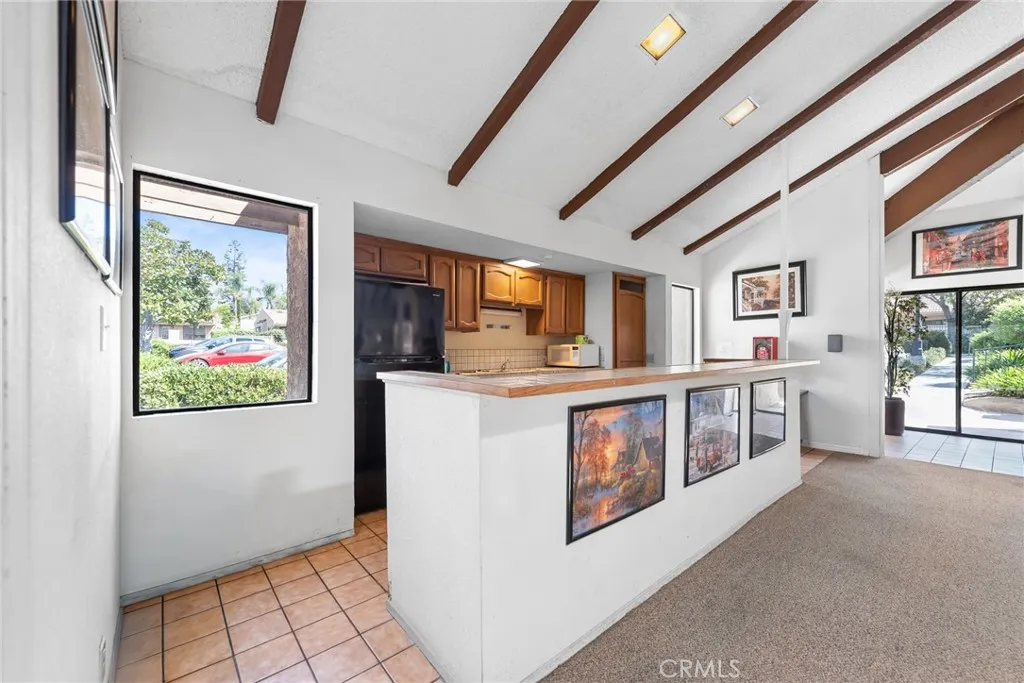 Welcome to your inviting new home, a beautifully remodeled condo nestled behind the gates in a vibrant 55-plus community. This charming one-bedroom, one bathroom residence boasts 580 square feet of well designed living space with an abundance of light pouring in from high windows. Step inside to discover beautiful laminate flooring that compliments the modern aesthetics of the open-concept layout, seamlessly connecting the kitchen, dining area and living room. The thoughtfully remodeled kitchen features pretty Corian countertops, perfect for enjoying meals or entertaining friends. With easy access to the dining and living areas, hosting gatherings will be a delight. If you have larger gatherings planned, the spacious clubhouse complete with a fireplace, living room and kitchen as well as a library room is the perfect place for entertaining with HOA approval. Retreat to the cozy primary bedroom, which offers two spacious closets. Relax on your private balcony, accessible from both the living room and bedroom, that offers a peaceful space to unwind while enjoying the fresh air and neighborhood scenery. Convenience is at your doorstep in this delightful community, as you’re just a leisurely stroll away from a variety of shops and restaurants, the cultural center and library and a coffee shop. Enjoy the ease of elevator access as well as a level entry to the second floor unit, assuring comfort and accessibility, if you don't want to take the stairs. This condo is not only a place to live, it’s a lifestyle. With its modern amenities, prime location and welcoming community, it’s the perfect setting to embrace the joys of living in Yorba Linda. You also have easy freeway access and are not far from the beaches or Orange County entertainment but it is also a quick drive to Corona and Riverside. Don’t miss your opportunity to call this Gem your own!