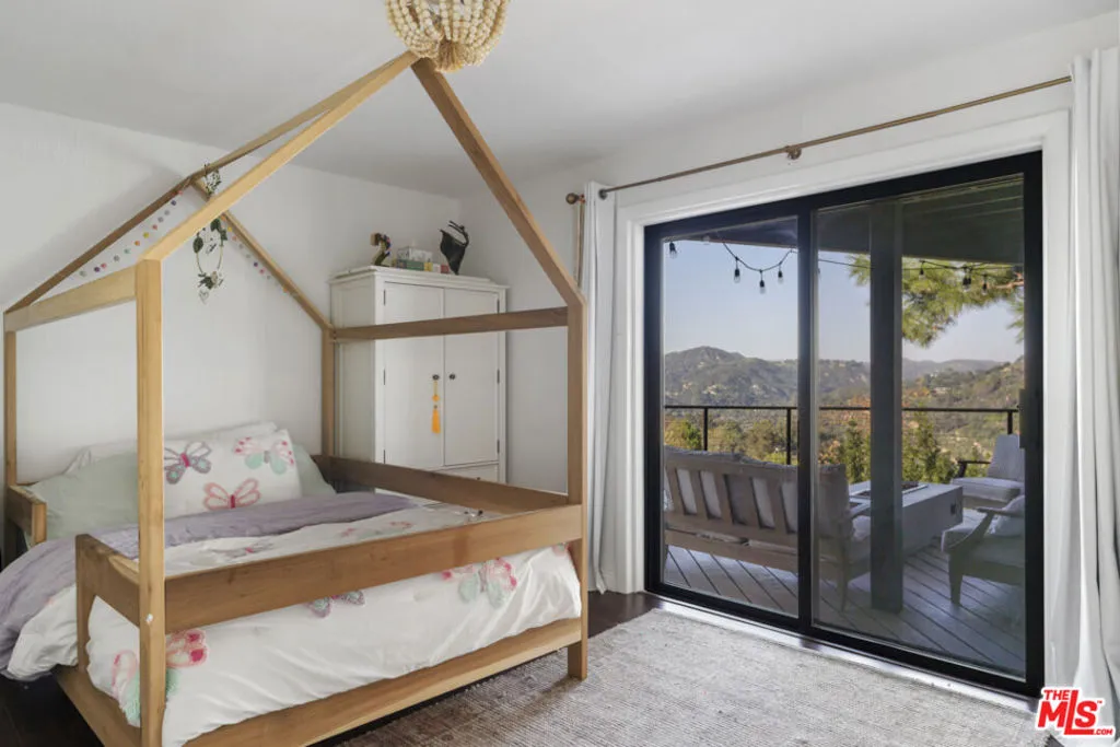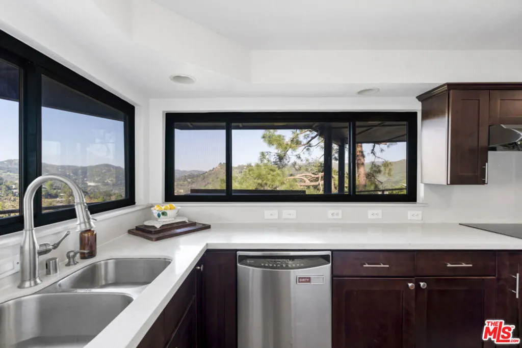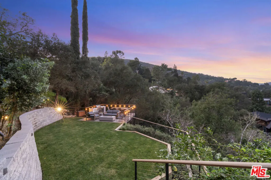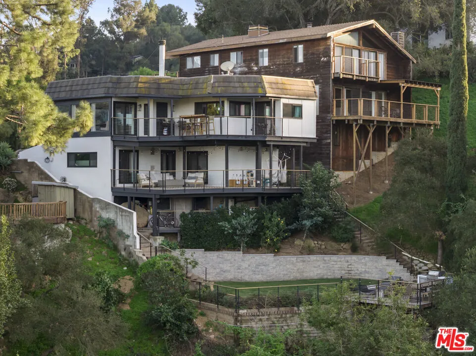 Perched above the canyon with sweeping mountain panoramas, this private 3-bedroom, 2-bath Topanga retreat feels like a sanctuary carved into nature itself. Dramatic natural boulders flank the exterior staircase, offering a hint of the home's rustic soul before you even step inside. Enter the expansive living room an entertainer's haven where soaring wood-beamed ceilings, rich hardwood floors, and a commanding stone fireplace create a warm, cinematic atmosphere. Wall-to-wall windows draw in endless canyon vistas, blurring the line between indoors and out. The bright, inviting kitchen is a chef's delight, featuring beautiful cabinetry, sleek countertops, and an abundance of windows that frame the surrounding landscape like living artwork. The generous primary bedroom boasts glowing natural light, wood flooring, and excellent closet space, while both bathrooms have been thoughtfully and beautifully updated. Outside, over 1,000 sq ft. of wraparound decks offer front-row seats to Topanga's tranquil beauty, perfect for alfresco dining, sunset lounging, or simply breathing in the serenity all year long. The backyard adds yet another peaceful nook for reflection or relaxation. Modern comforts meet timeless natural charm. This rare, soulful property is more than a home, it's a place to root, restore, and create years of unforgettable memories.