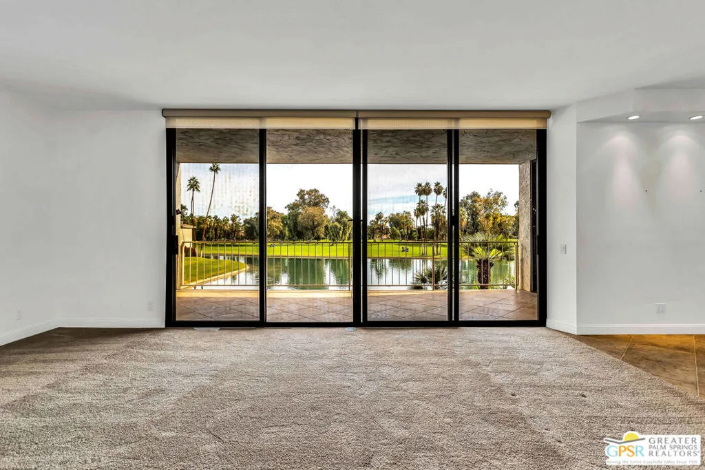 Available for sale or for lease. One of the most coveted places to live in Rancho Mirage, Desert Island is a prestigious guard-gated community surrounded by serene lakes and a lush golf course. This spacious residence is ideally located on the highly desirable east side of the building, offering gentle morning sun and sweeping views of the sparkling lake with dramatic water feature, the golf course, and the surrounding mountains. Available for Lease or Sale. With the rare distinction of facing both the lake and mountains, the expansive patio and main living areas enjoy exceptional privacy and tranquility perfect for relaxing, reading, or entertaining while immersed in the beauty of nature. The unit is move-in ready and features newer A/C and heating systems for comfort and efficiency. Numerous upgrades include plantation shutters, granite countertops in the kitchen and baths, tile flooring, solid-core doors, and updated hardware throughout. The open kitchen flows seamlessly into the living area and views, highlighted by a beautifully lighted backsplash and a breakfast/cocktail bar. Desert Island is a unique high-rise condominium community offering 24-hour guard-gated security and meticulously maintained grounds. Residents enjoy walking paths, birdwatching areas, sitting benches, fruit trees, tennis courts, a fitness center, swimming pools and spas, and more. All of this is centrally located in the heart of prestigious Rancho Mirage, adjacent to Eisenhower Medical Center, and just minutes from shopping, theaters, El Paseo, downtown Palm Springs, fine dining, cafes, casinos, medical facilities, and the airport. A true oasis that feels a world away, yet close to everything.