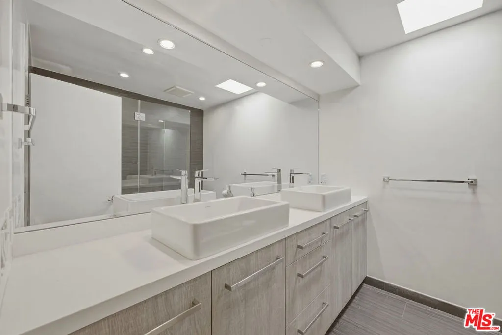 Welcome to modern living at The Bristol, ideally located in the heart of West Hollywood just north of Santa Monica Boulevard and east of La Cienega. This top-floor residence offers approximately 1,379 square feet of thoughtfully designed living space with sweeping east-facing views and abundant natural light throughout. The spacious, bright, and airy living room opens to a private balcony, perfect for morning coffee, evening relaxation, or stargazing. An open-concept layout seamlessly connects the living room, dining area, and kitchen creating an inviting space for both everyday living and entertaining. The updated kitchen features stainless steel appliances, quartz countertops, and ample cabinetry, offering both style and functionality. A dedicated dining area is adjacent to the kitchen, enhanced by large windows that fill the space with natural light. Tile flooring in living room, dining area, kitchen and bathrooms, coupled with hardwood flooring in both bedrooms and hallway adds to this unit's clean, modern aesthetic. The spacious primary suite provides an expansive eastern view, a roomy walk-in closet, and an updated en-suite bath with a glass-enclosed shower. Both bathrooms have been tastefully updated with contemporary finishes, including skylights, and a double vanity + glass-enclosed shower / soaking tub in the second bath. The second bedroom is versatile and ideal as a guest room, home office, or nursery, and also faces east with a view. Dining area and bedroom windows have plantation shutters. An additional highlight offers the convenience of an HOA-approved washer / dryer combo in the unit that is located in a laundry room with additional storage. There are two assigned side-by-side parking spaces in the gated garage along with a private storage cabinet. Residents of The Bristol enjoy access to a pool and expansive outdoor common area with tables and seating, perfect for relaxing or entertaining. Monthly HOA dues of $699. includes water, property maintenance and structural earthquake insurance. Ideally situated near some of West Hollywood's most popular destinations, The Bristol is just moments from Sunset Boulevard, Barry's and Equinox gyms, Gelson's, Trader Joe's, Landmark Theatres, Marix Cafe, La Boheme, CVS, Wells Fargo, Bank of America, and soon-to-open Laurel Supply and Erewhon markets, placing the best of city living right at your doorstep.
