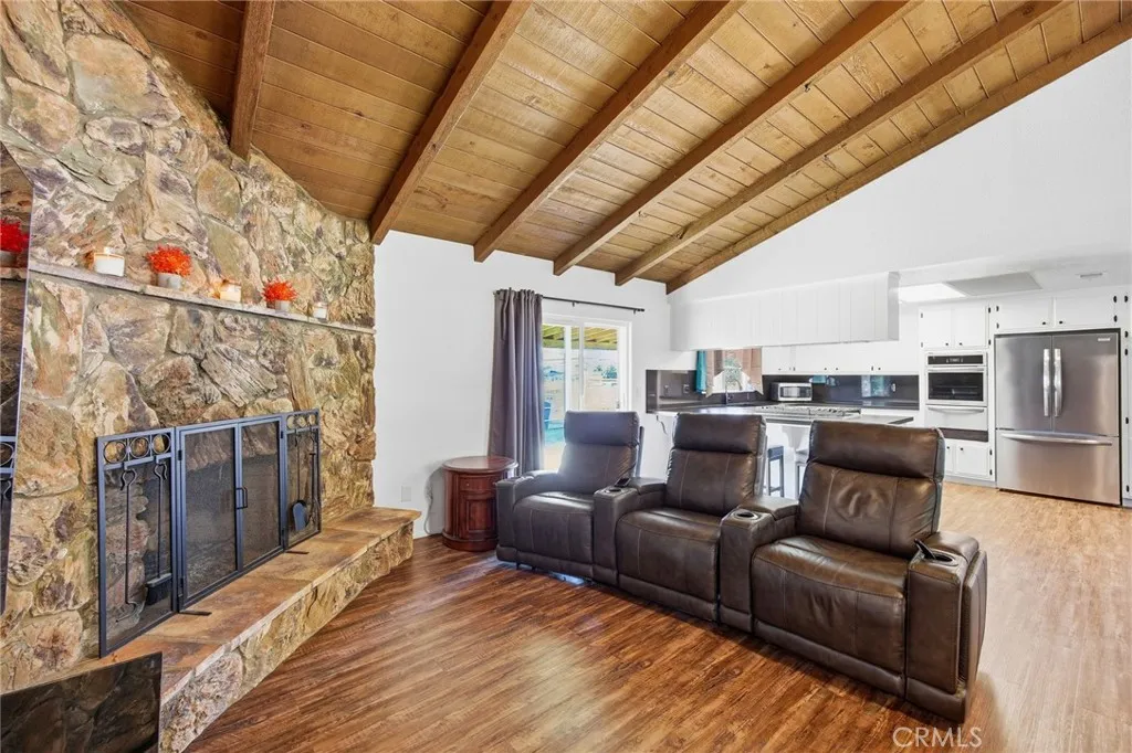 BACK ON THE MARKET. BUYERS UNABLE TO PERFORM….Looking for that horse property? .......This single level well maintained ranch style home has so much to offer for the horse lover. Beautiful high vaulted wooden ceilings, step down open family room with stone wood burning fireplace and family dining area is open to kitchen and living area. Newly remodeled kitchen with upgraded stainless appliances, gas oven, range hood, dishwasher, newly installed garbage disposal, sink, upgraded faucet, beautiful quartz counters, gas countertop with breakfast bar to enjoy conversations with family and friends all open to the living area. Newly installed custom dark laminate vinyl plank flooring throughout. 2 nicely sized guest bedrooms, one has custom-built bookshelves, plus spacious main bedroom with slider for easy access to the rear yard. Completely upgraded guest bath with new shower/tub, upgraded vanity, flooring, toilet, lighting and upgraded faucets. Main bathroom has walk in shower, upgraded vanity, flooring, and lighting features. Newly installed double pane upgraded windows and sliders. Upgraded plumbing throughout house and newly installed pressure regulator. Newly installed roof top AC/heating unit, newly installed hot water heater, upgraded lighting features throughout with style switches and ceiling fans. Septic tank pumped and certified with newly installed risers, newly installed exterior lighting features. Section 1 termite has been completed. All new exterior and interior paint. Rear yard has 2 - 24x24 – pipe corrals with partial shelter. Large turnout arena with mature shade trees, completely fenced and wash rack. 3 car garage plus so much room to accommodate for that RV or horse trailer. The house sits back from the street with large shade trees for extra privacy and ready to move in!