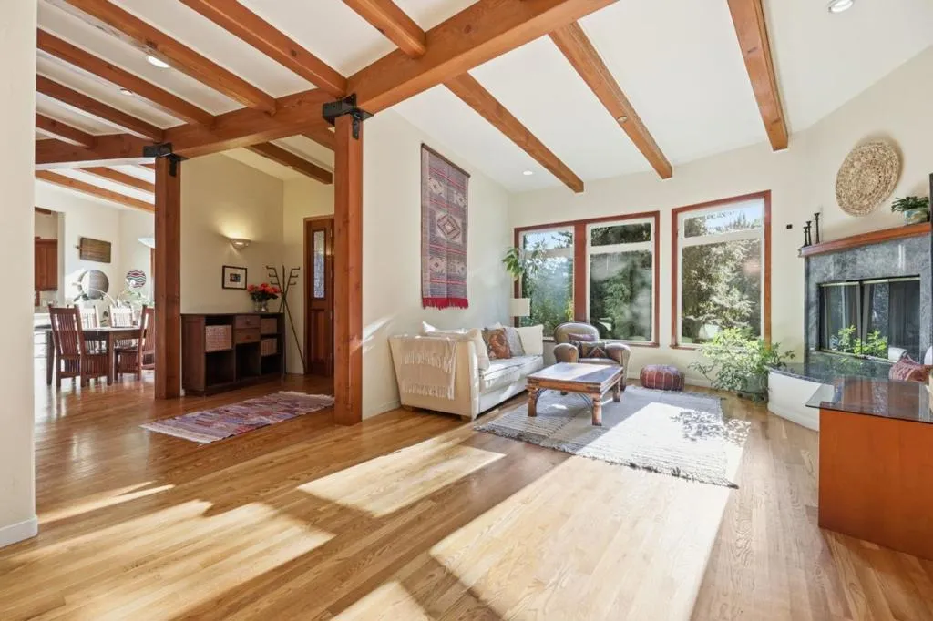 Set on nearly 8 private acres just 10 minutes from downtown Los Gatos, this distinctive executive estate offers rare space, flexibility, and income potential in a redwood setting. The 4,427± SF main home is complemented by a detached studio with adjacent flex/gym space and a separate one-bedroom cottage with own address...creating a versatile compound ideal for modern living. The main residence features high end finishes, a spacious kitchen, exposed beams, custom woodwork, abundant natural light, and seamless indoor-outdoor living with multiple courtyards, decks, and forest views. Outdoor amenities include a private hot tub pergola and a forest fire pit, creating a peaceful, wellness-oriented environment. The detached 600± SF studio is currently rented and offers flexibility for work, guests, or income. The adjacent gym/flex area provides the potential to reconfigure or expand into a one-bedroom layout over time. A separate 800± SF one-bedroom cottage with a new roof, ready for interior finishes and with its own address has previously been rented and is well suited for multigenerational living or additional income. Enjoy privacy and natural beauty just minutes from Los Gatos and Netflix, with access to Loma Prieta Elementary and Los Gatos schools.