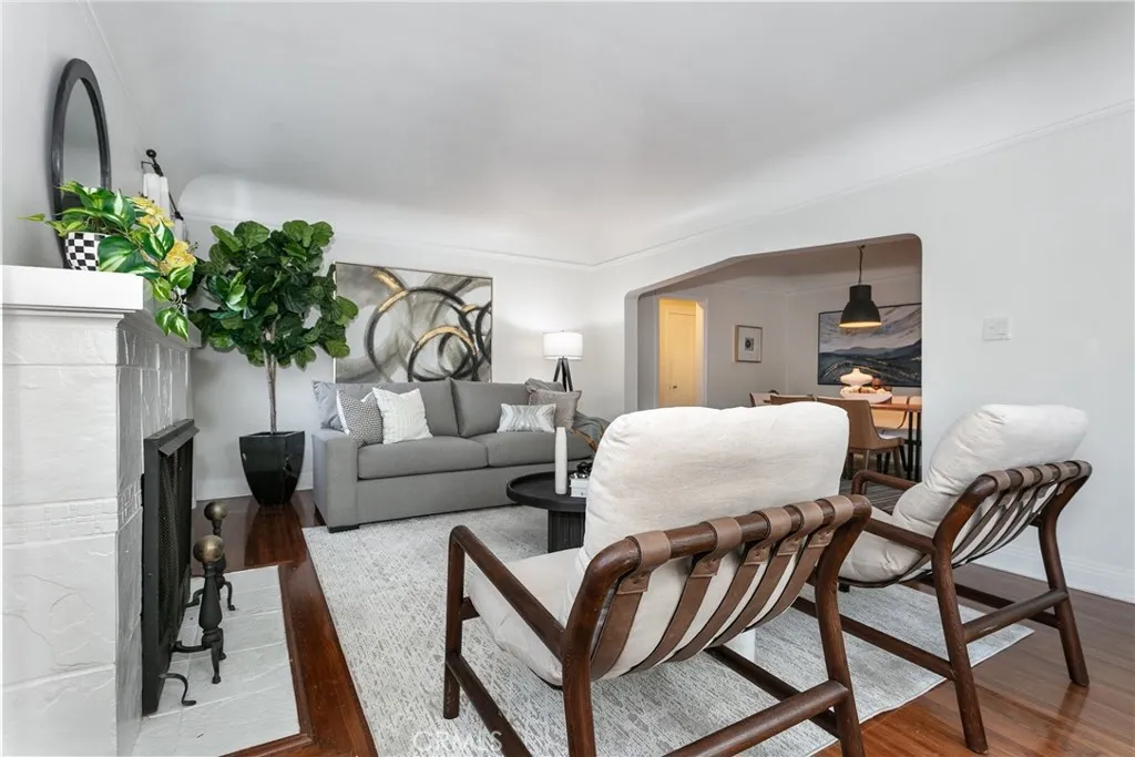 This single-story home is located in the north central neighborhood of Pasadena. It features a welcoming front yard and a detached garage with gated driveway access. Conveniently close to schools, local parks, cafés, and retail shops, Old Town Pasadena, the Rose Bowl, golf courses, hiking trails, and a variety of cultural attractions are all within easy reach. The living room is spacious and inviting with hardwood flooring and a fireplace. Abundant natural light flows in through the windows, creating an open and comfortable setting for everyday living, with easy flow into the formal dining room suitable for gatherings. The open kitchen includes recessed lighting, ample cabinetry, granite countertops, a mosaic tile backsplash, tiled flooring, and stainless steel appliances. An adjacent breakfast nook provides space for casual dining. The home includes two bedrooms offering comfortable accommodations and flexible use. The full bathroom features a tub-and-shower combination with tiled finishes for easy upkeep. A separate laundry room provides ample storage space for household needs. Spend leisurely afternoons in the south-oriented backyard, which offers a pleasant outdoor environment with a built-in fire pit seating area suitable for relaxation, gatherings, and alfresco dining. Mature landscaping and fencing add a sense of privacy. The outdoor space provides a comfortable and versatile area for entertaining and enjoying the peaceful, tranquil neighborhood..