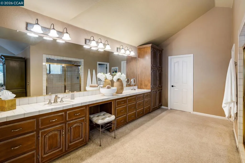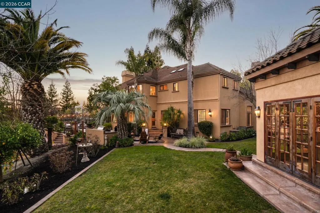 Tucked behind the gates of Blackhawk Country Club on a private 1.87-acre lot, this distinctive estate offers a sophisticated resort-style lifestyle. Designed for seamless indoor-outdoor living & expansive entertaining, the property features a destination backyard backing to open space with east-facing views of the Tassajara Valley. 4,919sqft with 4 beds & 3.5 baths, including a bonus room (potential bedroom) & executive office. The chef’s kitchen features new Viking, Bosch & KitchenAid appliances, granite countertops, custom cabinetry, a large center island, walk-in pantry, & dining nook. Outdoor living includes multiple patios on two levels, a solar-heated pool & spa, sports court, built-in grill, manicured lawns, & mature palms. A standout approx 300sqft cabana offers a wood-burning fireplace & 4 sets of fold-away French doors opening to the gardens & views, ideal for gatherings day or night. The primary suite includes a private balcony overlooking the grounds. Additional highlights include custom mesquite double front doors, hardwood & tile floors, coffered ceilings, crown molding, plantation shutters, recessed lighting, a 3-car garage, & dual updated HVAC systems. Enjoy access to golf courses, clubhouses, tennis & pickleball, sports complex, fitness center, & Blackhawk Plaza.