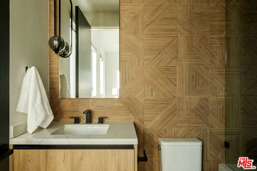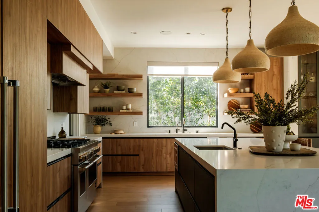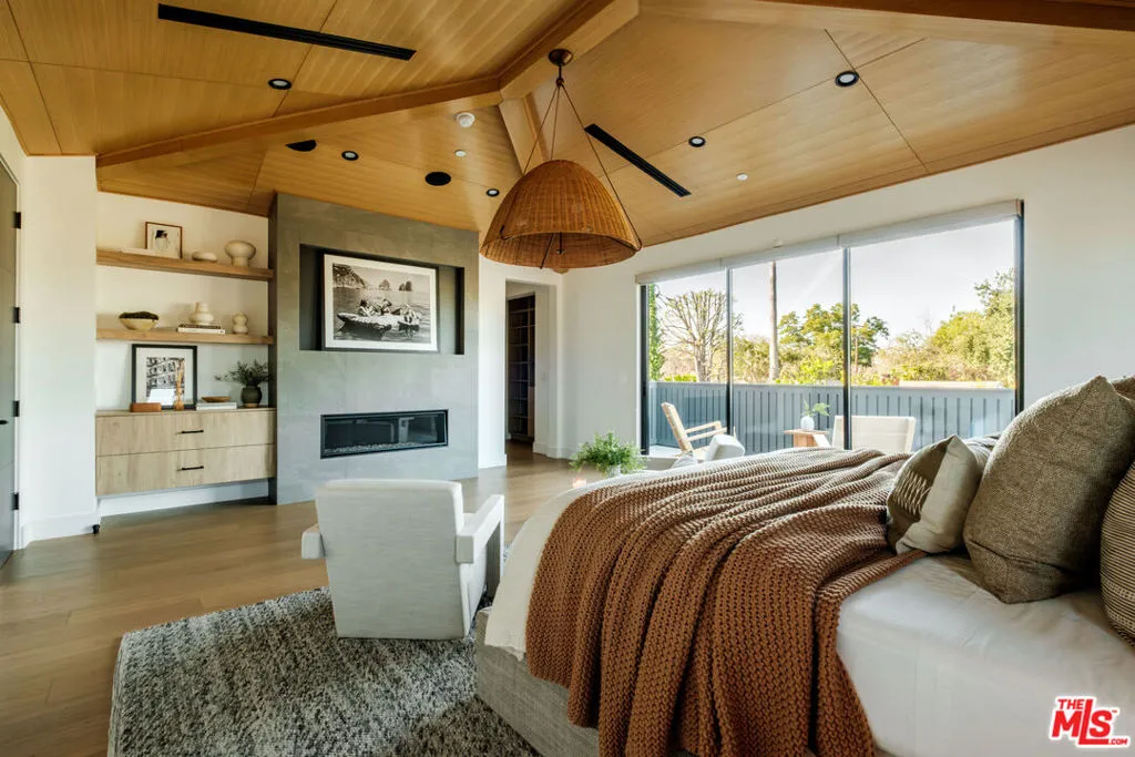 A masterfully crafted modern farmhouse where organic elegance and seamless indoor-outdoor living define Sherman Oaks luxury. Welcome to 15473 La Maida, a stunning newly constructed modern farmhouse, privately set on a tranquil street in one of Sherman Oaks' most desirable neighborhoods. Behind gates and striking curb appeal, a grand covered entry welcomes you with soaring ceilings, bespoke designer lighting, and wide-plank European oak floors throughout. The main level unfolds with an elegant living room anchored by a statement stone fireplace, seamlessly flowing into a formal dining room with custom built-ins. At the heart of the home is a chef's kitchen designed to impress, featuring a generous center island, quartz countertops, premium stainless steel appliances, and an expansive walk-in pantry. The adjacent family room, complete with custom built-ins and a fireplace, opens through floor-to-ceiling pocket glass doors to create a true indoor-outdoor lifestyle. Upstairs, the romantic primary suite is a peaceful sanctuary, offering a cozy sitting area, fireplace, dual walk-in closets, and a spa-inspired bath appointed with a soaking tub, glass-enclosed rain shower, dual vanities, dedicated makeup seating, and private water closet.Designed for entertaining, the resort-style backyard showcases a sparkling pool and spa, fire pit, built-in BBQ and a poolside cabana complete with its own bathroom. Additional highlights include an upstairs laundry room, Control4 smart home integration, and a two-car garage. An exceptional opportunity to enjoy refined modern living just moments from premier shopping, fine dining, and all that Sherman Oaks has to offer.