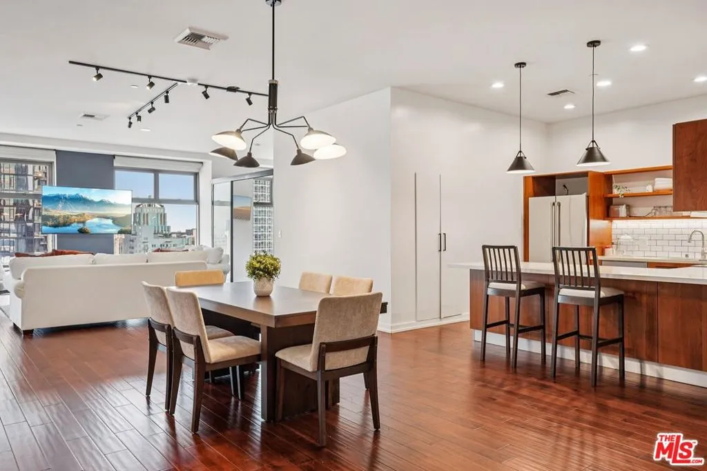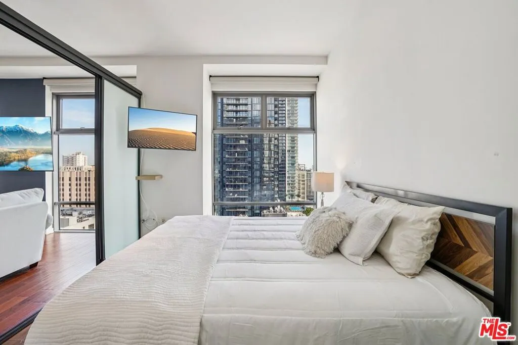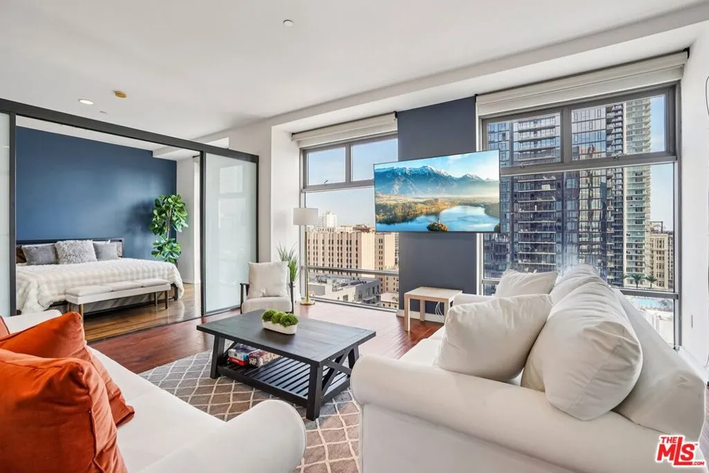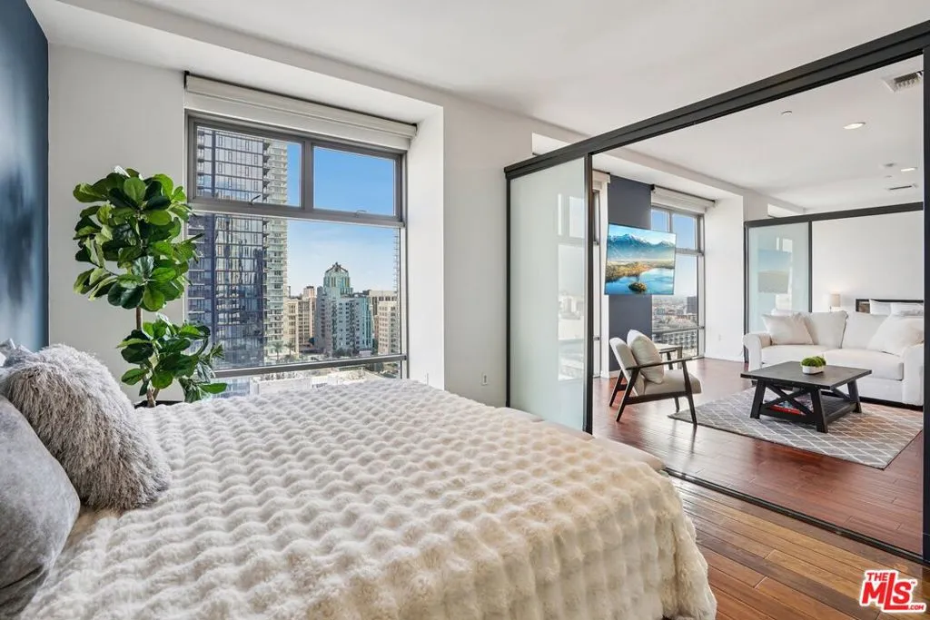 Rarely available for lease, this expansive 3-bedroom, 3-bath residence at Sky Lofts offers nearly 2,000 square feet of thoughtfully designed living space in a premier Class A building at the center of Downtown Los Angeles. Floor-to-ceiling windows frame striking city views while filling the open living and dining areas with natural light. The modern kitchen is equipped with sleek cabinetry, stone countertops, stainless steel appliances, and a generous counter ideal for both daily living and entertaining. Each bedroom is well-proportioned, offering flexibility for guests, home offices, or creative space, while all three bathrooms are finished with clean, contemporary lines. Warm wood flooring, high ceilings, and walls of glass framing sweeping downtown views create a refined yet comfortable atmosphere throughout. Located moments from dining, culture, and transit, this is a rare opportunity to lease a true full-size residence in one of Downtown's most desirable buildings.