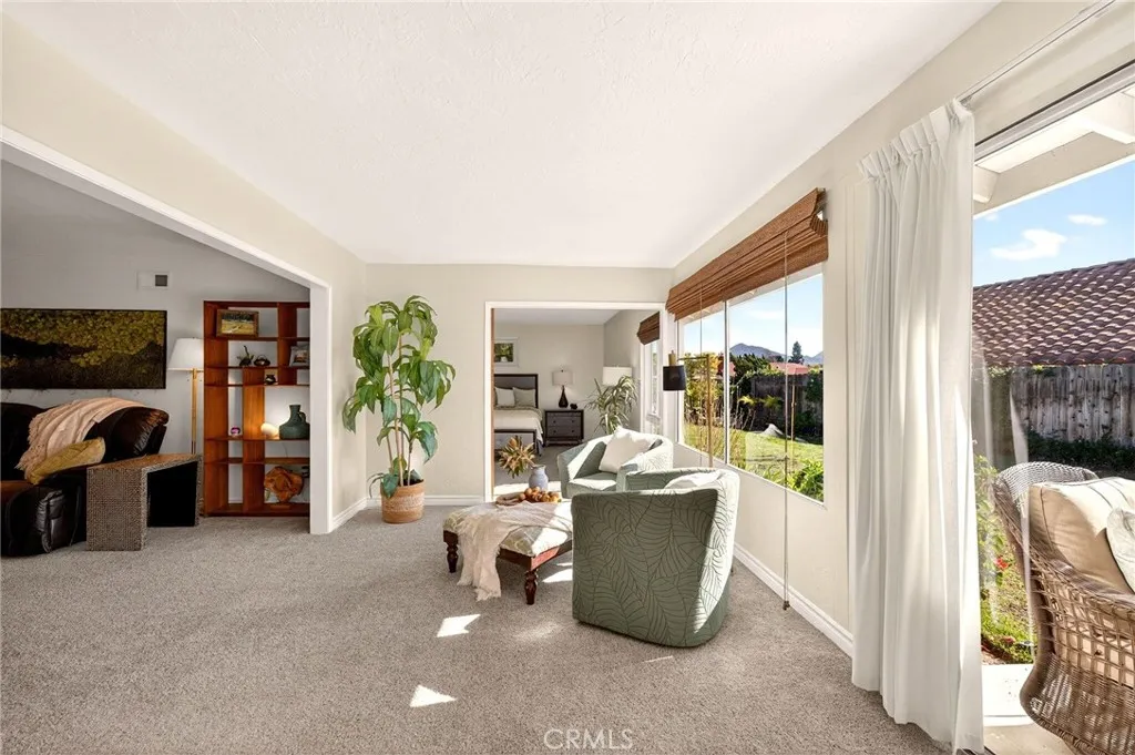 Welcome to this charming single-level residence located in the highly sought-after 55+ Seven Oaks community of Rancho Bernardo. Just five minutes from the Rancho Bernardo Golf Course, this Acapulco open floor plan offers 2 bedrooms, 2 bathrooms, plus a versatile den conveniently located near the kitchen. Abundant natural light fills the home, creating a bright and inviting atmosphere throughout. The living and dining areas seamlessly open to the converted sunroom, providing direct access to the peaceful backyard as well as the primary bedroom and en-suite bathroom. The backyard is a serene retreat, beautifully landscaped with lush greenery and mature fruit trees including nectarine, loquat, Black Jack fig, plum, apple, lime, and lemon—perfect for relaxing or entertaining. Residents enjoy the benefits of low property taxes along with access to the Seven Oaks Community Center for just $615 per year, offering amenities such as a pool, jacuzzi, pickle ball court, library, fitness center, and a variety of community events. Ideally located just 10 minutes from Carmel Mountain Plaza with shopping, dining, coffee shops, and more. This home offers a perfect blend of location, layout, and lifestyle!