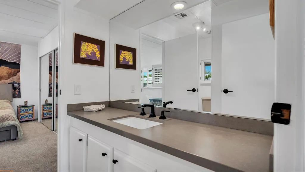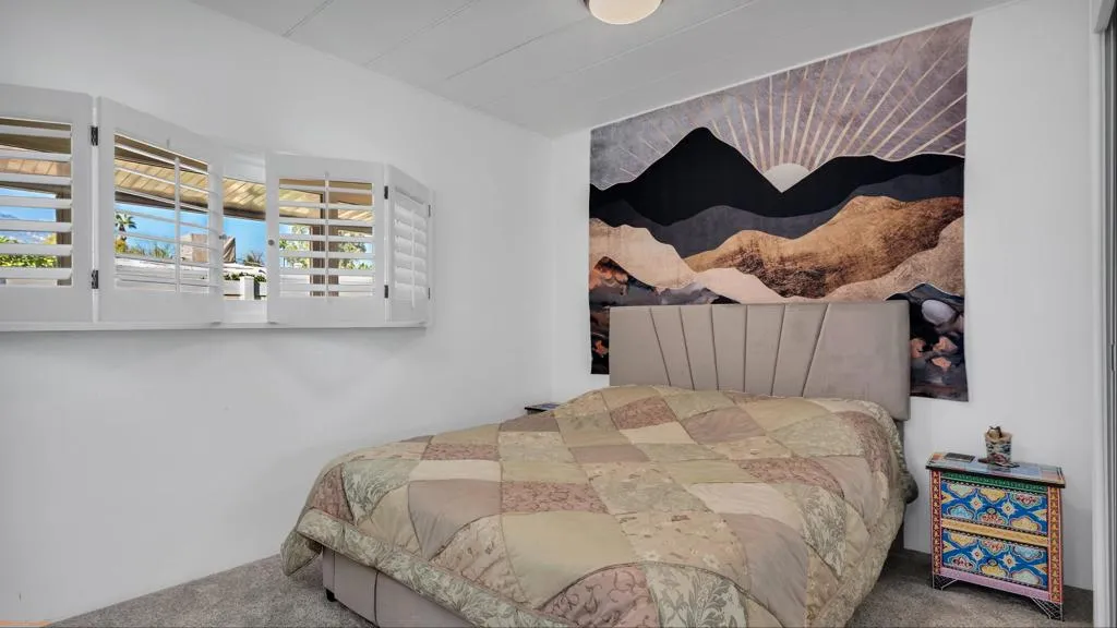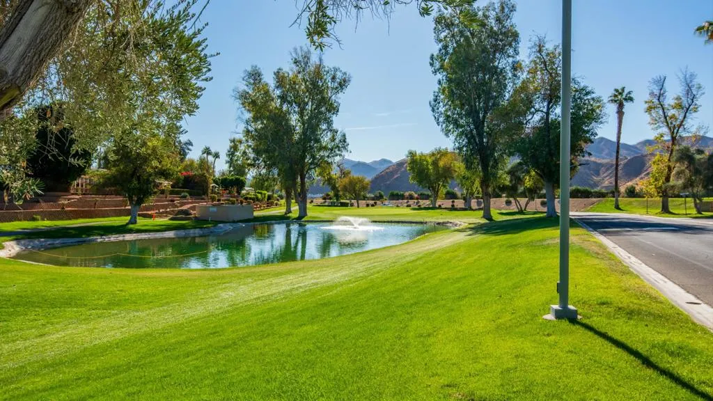 Set in a prime golf course location, this beautifully cared-for three-bedroom, two-bath home captures sweeping mountain views and sparkling city lights from its elevated perch. The raised setting offers enhanced privacy and an exceptional outdoor lifestyle, where the expansive patio is perfect for quiet mornings, sunset views, and effortless entertaining under the desert sky.Designed for easy living, the property features low-maintenance landscaping and a true move-in-ready presentation. Thoughtful upgrades are evident throughout, including new flooring in the lounge, New double-pane windows on both sides of the home , new roof with drains cleared, new gas lines under the house , new built in wall oven and microwave, repainted kitchen cabinets, repainted cabinets in guest bathrooms, new front screen retractable door installed and numerous additional improvements ( we have a list ) that reflect the pride of ownership and care poured into this home. The interior feels bright and airy, filled with natural light and an open, welcoming atmosphere.Unwind in the beautifully upgraded primary bath, highlighted by a jetted soaking tub, granite-topped dual vanities, and an ambiance reminiscent of a private spa.. The guest bathroom is beautifully updated with a spacious tiled walk-in shower and quartz countertop, offering comfort and style for visitors.A welcoming dining area with a built-in wet bar adds both charm and functionality, making it ideal for entertaining and everyday enjoyment.Lovingly maintained and thoughtfully updated, this home offers a rare blend of location, views, comfort, and quality, all within the sought-after Date Palm Country Club. Furniture included per sellers inventory list !!