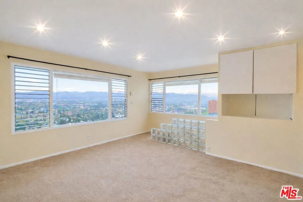 Hidden behind gates on a scenic Studio City hillside, this striking residence offers three bedrooms, three bathrooms, and sweeping panoramic city-to-mountain views. Expansive windows and glass doors flood the home with natural light, creating a seamless indoor-outdoor flow ideal for both entertaining and quiet evenings in. The full kitchen opens to generous living areas anchored by a statement fireplace, adding warmth and architectural character. A covered garage, additional parking, and a gated driveway provide rare convenience and privacy. Set above it all, this home delivers a refined retreat with commanding views and undeniable presence.