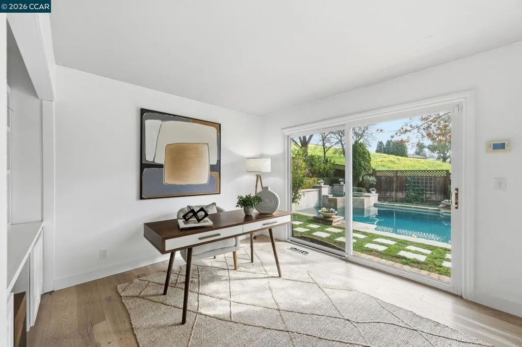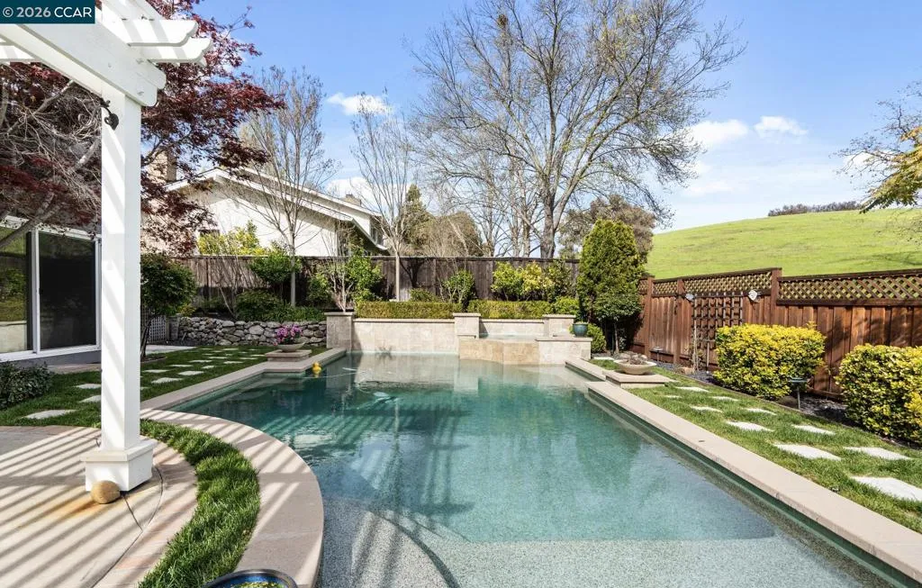 Stunning 4 bed, 3 bath, popular model estate home in the exclusive gated community of Crow Canyon Country Club. Property features superior craftsmanship, a resort-like backyard with a gorgeous pool and spa, patio, and stunning views to lush open space. Desirable court location makes this home ideal. Gorgeously remodeled inside a few years ago with no expenses spared, the property features French Oak hardwood floors, a custom crafted kitchen, stunning French Doors with side windows, dramatic sky lights, high ceilings, crown molding, dining room extension, and considerable craftsman details throughout. One full bed and bath downstairs. Spacious primary ensuite with upgraded bath. Large front yard with massive curb appeal. Windows everywhere and 3 sliding glass doors create an abundance of natural light and beautiful views throughout the home. The designer pool and spa makes a stunning centerpiece of this private resort-like oasis. Freshly re-landscaped and perfectly maintained, the backyard space has plenty of room for entertaining and relaxing. This meticulous home is like being in a 5 star resort. Imagine living your best life in this incredible home in the family friendly gated community of Crow Canyon CC. This unique estate home is not to be missed!