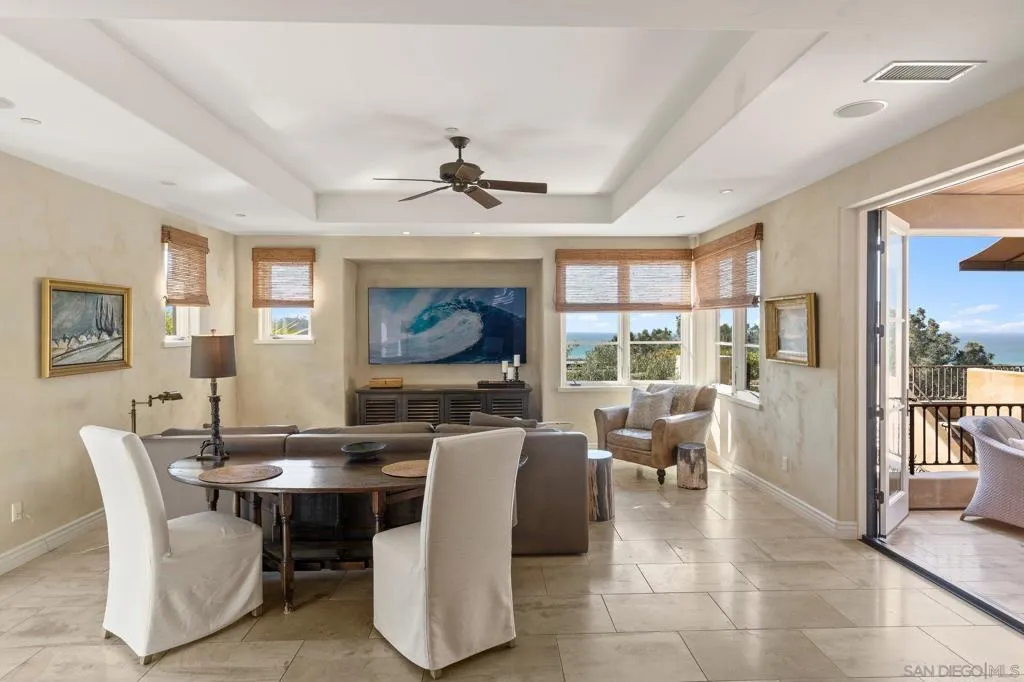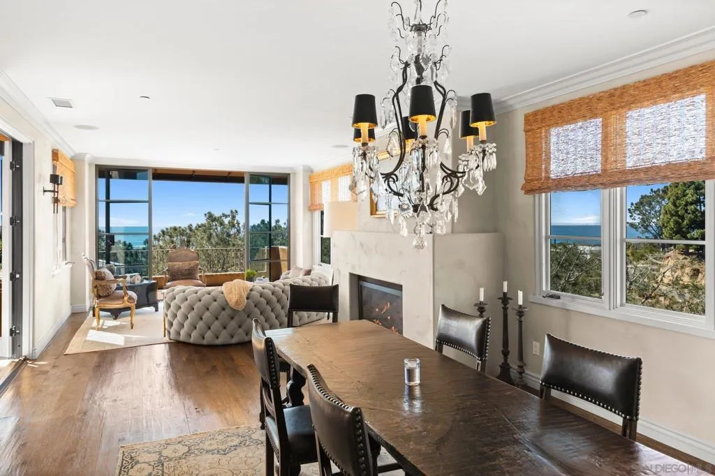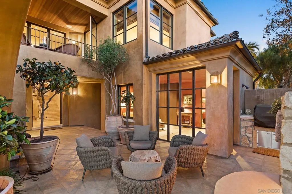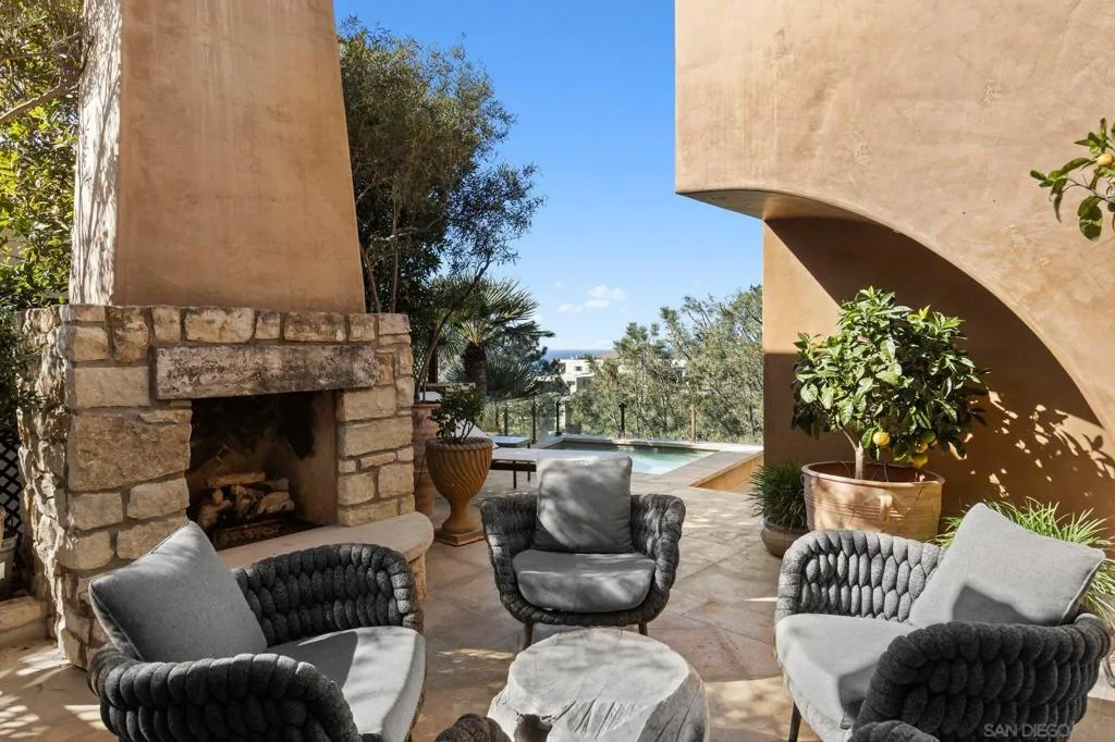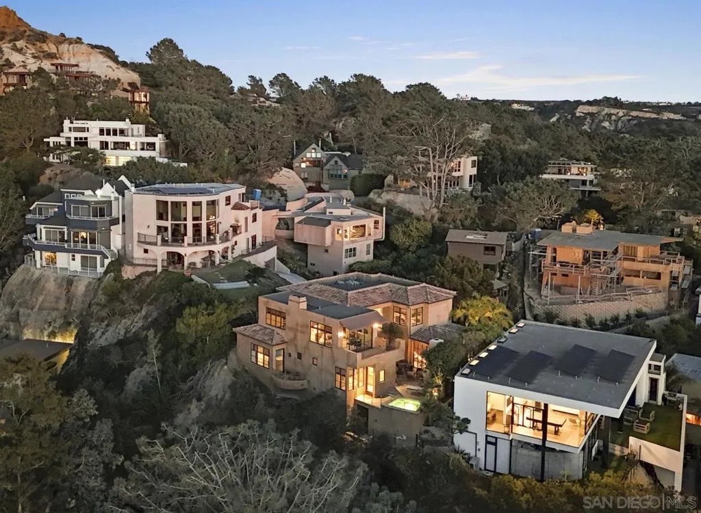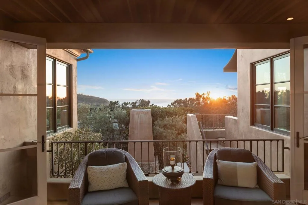 NEWLY PRICED!! Del Mar Terrace. Elevated. Private. Rare. A custom hillside Mediterranean villa with commanding Pacific views, elevator access, four bedroom suites, steel-and-glass architecture, wellness amenities, and resort-style living, including three fireplaces, private gym, wine cellar and ocean view spa—minutes from the village and the sea. Designed for privacy, wellness, and elevated coastal living. Tucked into the hills of Del Mar Terrace with views of the Pacific Ocean and the Torrey Pines Reserve is this masterfully built, modern Italian villa. Custom designed and constructed with extraordinary materials and workmanship, this home offers privacy and exudes quality. Complete with 4 bedroom suites, each with outdoor access, a sound proof gym, wine cellar, elevator, 3 fireplaces, outdoor spa with ocean view, cook’s kitchen, walk-in pantry, primary retreat with 2 walk-in closets, and 3 car garage. Located minutes to the beaches and California surfing, the Village of Del Mar, hiking and golf at world class Torrey Pines, the Del Mar Race Track, shopping and dining, just 30 minutes to public and private airports, 3 universities and downtown San Diego. The best known secret in Del Mar is the neighborhood of Del Mar Terrace with its viby, eclectic charm offering exclusivity, luxury and privacy, a blend of cutting edge design, panoramic views and a lifestyle and community that values privacy and quiet, but remains close to nightlife, fine dining, entertainment and outdoor endeavors. Nothing compares.