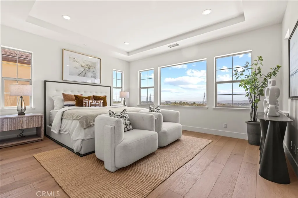 Upstairs, a generous loft provides additional versatile space, while the primary suite serves as a private sanctuary. Featuring dual walk-in closets, a spa-inspired marble bath, and a private view balcony, this retreat captures unforgettable sunrise and sunset moments above the city.