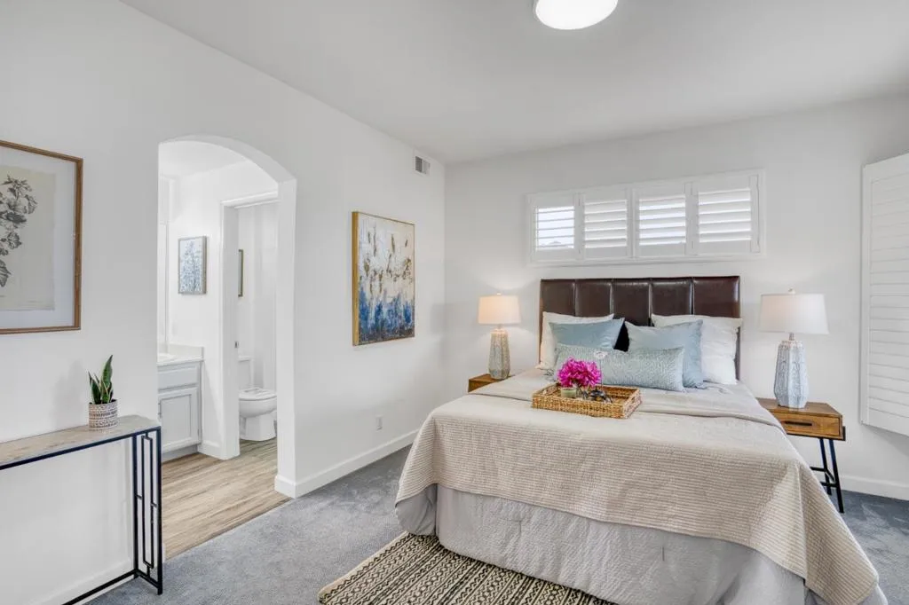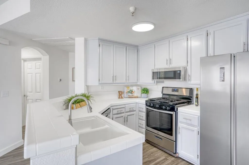 Top-floor privacy in the heart of Redwood City! This centrally located 1-bedroom, 1.5-bath condo offers 927 sq ft of comfortable, open-concept living with only one limited shared wall, thoughtfully positioned at the kitchen and closet for enhanced quiet. The updated kitchen features custom cabinetry, a brand new gas range, a dishwasher, and a refrigerator, flowing seamlessly into the light-filled living and dining area. Cozy up by the fireplace or enjoy the flexibility of a separate office/den, perfect for working from home or hosting overnight guests. Additional highlights include in-unit laundry, a spacious walk-in closet, a full bath with double sinks, a convenient half bath, and access to a fenced community pool. Located in the sought-after BelmontRedwood Shores Elementary School District and close to shopping, dining, the Redwood Shores lagoon, and commuter routes.Pet-friendly community. Top-floor living. Prime location. Move-in ready.