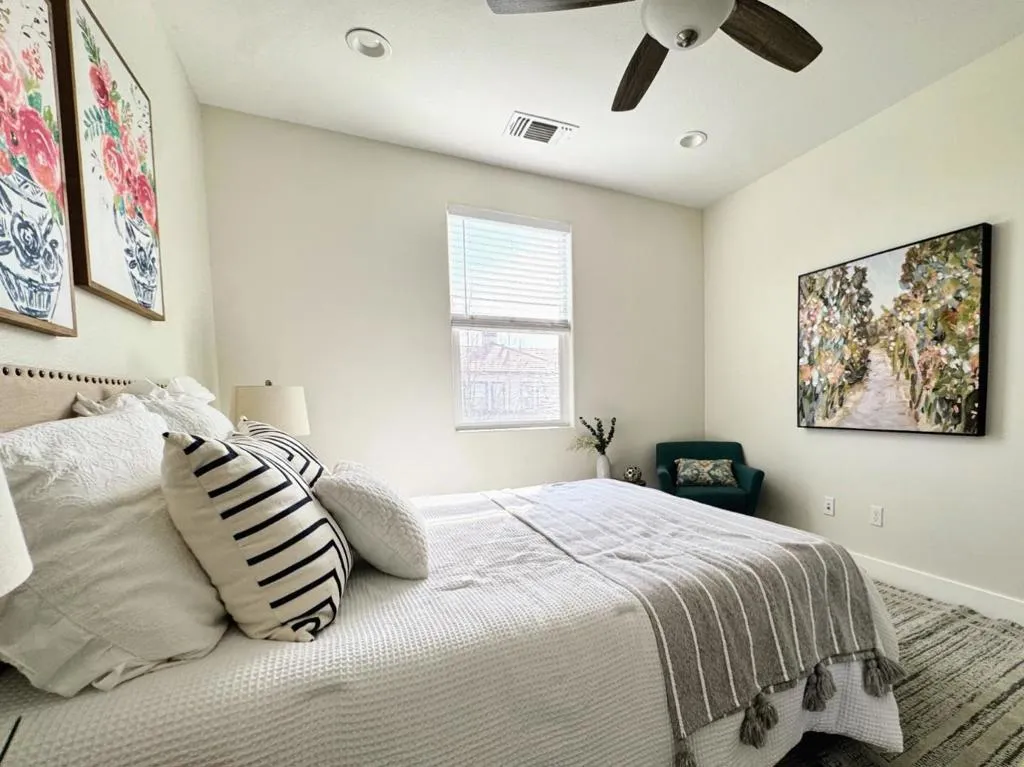 Are you exhausted by the commute? Why wait, when you can live in the vibrant Metro Villas Community, where modern luxury meets ultimate connectivity and sustainability! It's a walker's paradise for those looking for a car-free lifestyle. Skip the commute and walk to BART, shopping, dining, and more, why look elsewhere when you can step into this sun-drenched, energy-efficient sanctuary in the heart of Milpitas? Built in 2017 and freshly reimagined for 2026, this 4-bedroom, 3.5-bath home offers a seamless blend of tech-forward features and designer finishes. From the custom-painted kitchen cabinetry to the pristine, freshly coated garage floor with side-by-side parking, every inch feels brand new. Whether you're charging your EV, hopping on BART, or walking to Trader Joe's to prep for dinner, life here is effortless. Grab a workout at CrossFit, only a block away, or take a short stroll to the park with your kids or play a match of tennis with friends. This home is designed for the high-paced Silicon Valley lifestyle, without the stress! Move in today and enjoy a polished, modern home in the center of it all.