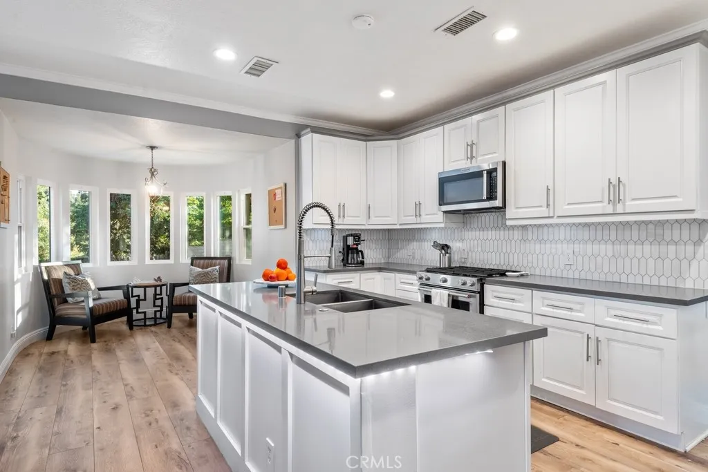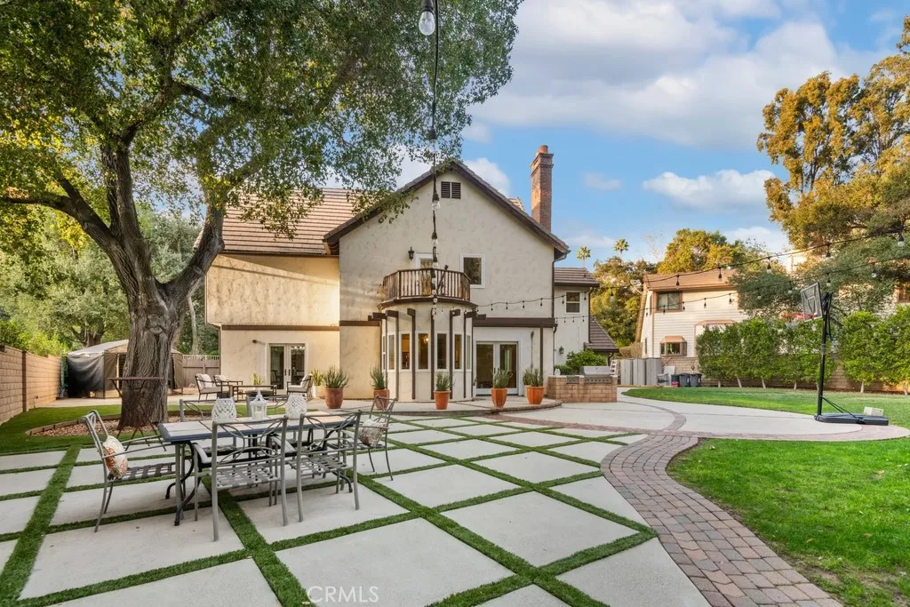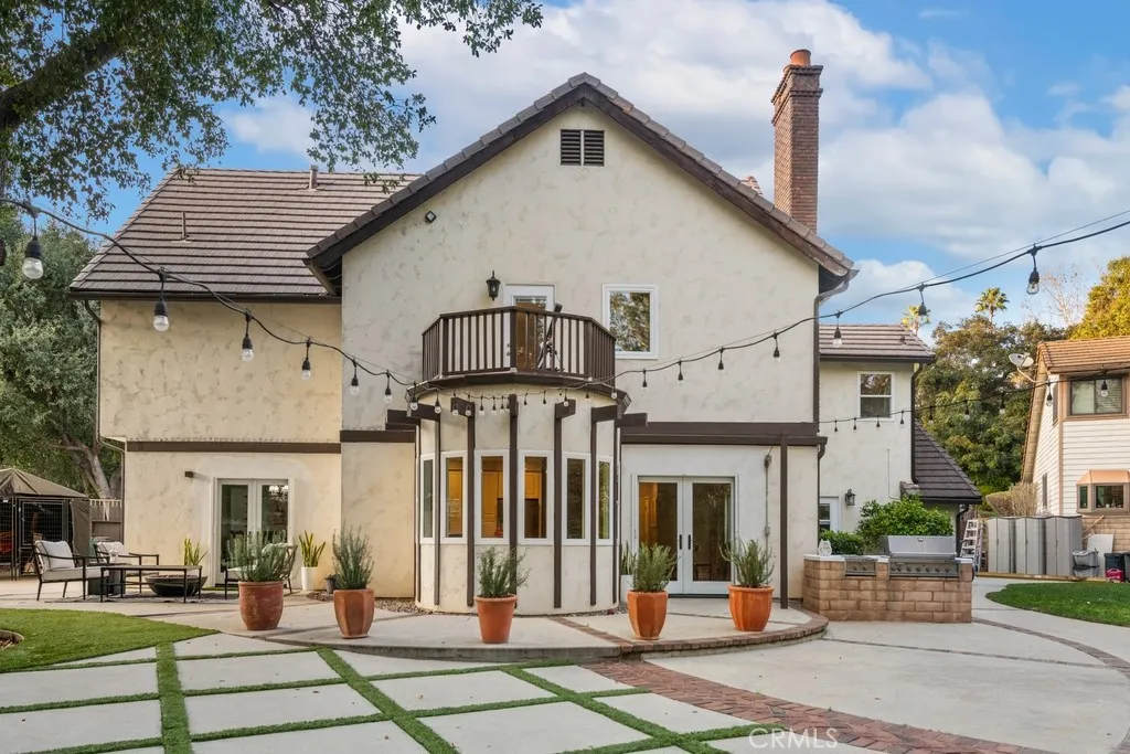 Enter a storybook setting where classic European style meets modern suburban comfort with this enchanting Tudor-style family home. Tucked away on a quiet, tree-lined lot, this home makes a striking first impression with its iconic half-timbered accents nestled at the end of a quiet cul-de-sac in one of San Dimas’ most sought-after neighborhoods. A blend of unique architectural character with the practical needs of modern living, this residence offers a peaceful, spacious, and truly unique environment. This estate-style residence welcomes you at the driveway with brick inlay accents that lead you to a spacious two-car garage, featuring an arched entrance. The facade boasts intricate woodwork, a second-story balcony overlooking the entrance, and diamond-paned windows that invite an abundance of natural light. This home is a distinctive union of comfort, privacy, and timeless appeal. Set against the backdrop of a 250-acre park, the property enjoys a lifestyle advantage with immediate access to year-round outdoor recreation, including hiking, jogging, horseback riding, birdwatching, fishing, and community events just moments from your doorstep. The serene backyard offers peaceful hillside and park views, creating an uplifting setting for morning coffee, sunset dinners, and weekend gatherings. Designed with entertaining in mind, the outdoor space features a built-in barbecue area and plenty of room to host friends and family while enjoying the scenic surroundings. Framed by mature greenery and towering trees, the property feels like a private park. Inside, the home offers generous living areas and an upgraded kitchen featuring stainless steel appliances and a custom-built walk-in pantry, ideal for anyone who loves to cook, entertain, or stay organized. Adding even more value, the home has been enhanced with key upgrades recently, including new roof tiles, gutters, and water heater (2023), updated French doors (2022), new PEX plumbing and interior flooring (2020), and best of all, this property is not part of an HOA, giving you greater freedom to personalize and enjoy your home without monthly dues or special fees. A true San Dimas treasure with only two owners in its lifetime, offering space, privacy, views, and an unbeatable location for building lifelong memories. Whether you are drawn to the nostalgic "Old World" aesthetic or the spacious, multi-level layout, this home is a rare find that combines character with a commanding presence.