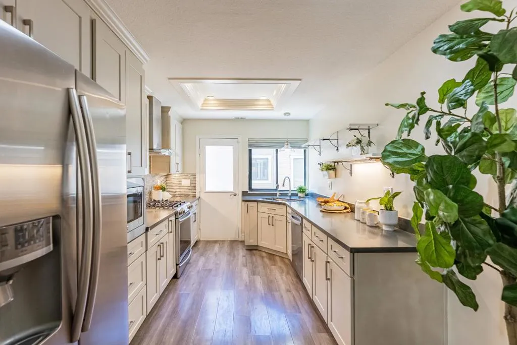 Towering 3-story townhome nestled in a park-like community, within walking distance of parks schools and less than a mile away from downtown Sunnyvale, which is your Caltrain connection. Featuring a welcoming open floorplan, high ceilings with recessed lighting, laminate flooring, tons of natural light from the dual pane windows, skylight, ring doorbell, WiFi smart light switches, heat/AC, fireplace, laundry room with washer/dryer and bonus office/den/gym. Gourmet kitchen featuring high-end stainless steel appliances, quartz countertops, tons of cabinet space and open dining area. 2 bedroom suites each with their own en-suite bathroom and closet w/ custom organizer. The over-sized primary bedroom suite ft. a walk-in closet and a spa-like en-suite bathroom featuring a frame-less stall shower and dual sinks. To top it all off, a two car garage, spacious patio with two separate entrances, extra storage and relaxing community swimming pool/spa. Located in a convenient location near restaurants, shopping, parks and major tech giants (LinkedIn, Google, Apple). Easy access to highway 101, 237 and Central Expressway. Do not miss your chance to own this newly remodeled stunner. It will go FAST!