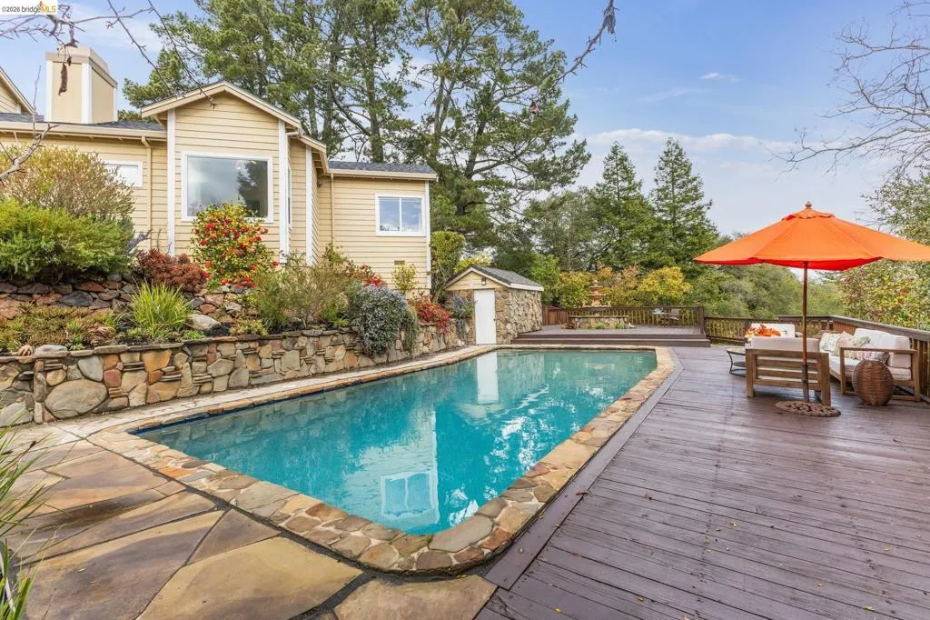 Glorietta Estate with Pool and Breathtaking Mount Diablo Views! Tucked away on nearly 1/2 an acre in one of Orinda’s coveted neighborhoods, this custom-built home offers sweeping views, Luxurious Poolside Living, and a timeless design. Built in 1992 and meticulously maintained by one family, this 4++ bedroom home is ready for its next chapter. Step inside to vaulted ceilings with soaring windows that invite natural light to flow effortlessly. The open-concept layout was designed for both everyday comfort and elegant entertaining. The heart of the home is the chef’s kitchen complete with a dramatic granite island, large pantry, eat-in breakfast area, and access to the outdoor patio for al fresco dining. There are 2 bedrooms downstairs and 2 plus a bonus bedroom or rec room upstairs. This home offers the perfect versatile design with 2 living rooms, a formal dining room, an office, and a wet bar. The primary suite is a true retreat featuring dual walk-in closets, a spa-like shower and bath, sauna, and a connected nursery or office. 4 sets of doors open out to the Backyard Paradise with a Recently Resurfaced Pool, sun deck, and a lush landscaped garden. New Roof in May 2025. Only minutes from Glorietta Elementary, Meadow Swim & Tennis Club, Orinda Square, and 1.3 miles from BART.