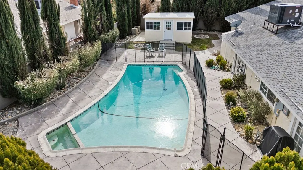 Located in the highly desirable College Terrace neighborhood, this beautifully upgraded single-story pool home offers one of the most sought-after floorplans in the area, blending comfort, functionality, and timeless design. From the private gated front porch to the expansive living spaces, this 3-bedroom residence features wide 46-inch hallways with potential for handicap accessibility, dual-pane windows, recessed lighting, two-panel interior doors, modern baseboards, and trim. The open-concept kitchen is designed for both everyday living and entertaining with double ovens, refinished cabinetry, granite countertops, custom tile backsplash, breakfast bar seating, and seamless flow into the dining area and family room with vaulted ceilings, built-ins, and fireplace, while a separate formal living room with brick accent fireplace and spacious formal dining room provide additional entertaining space. The primary suite offers direct backyard access through French doors and a beautifully remodeled en-suite bathroom with dual sinks and upgraded shower. Step outside to a private entertainer’s yard featuring a sparkling pool and spa, removable pool safety fencing, concrete patio, outdoor pool bathroom, raised garden bed, storage shed, and a detached “man cave” retreat complete with bar, booth seating, and dartboard. Additional highlights include recently installed leased solar panels, a long driveway with space for a 27-foot RV, boat, or trailer, and a white vinyl fenced front yard with mature landscaping. This well-maintained pool home delivers true indoor-outdoor California living with energy efficiency, RV parking, and move-in-ready upgrades in one of the area’s most established neighborhoods.