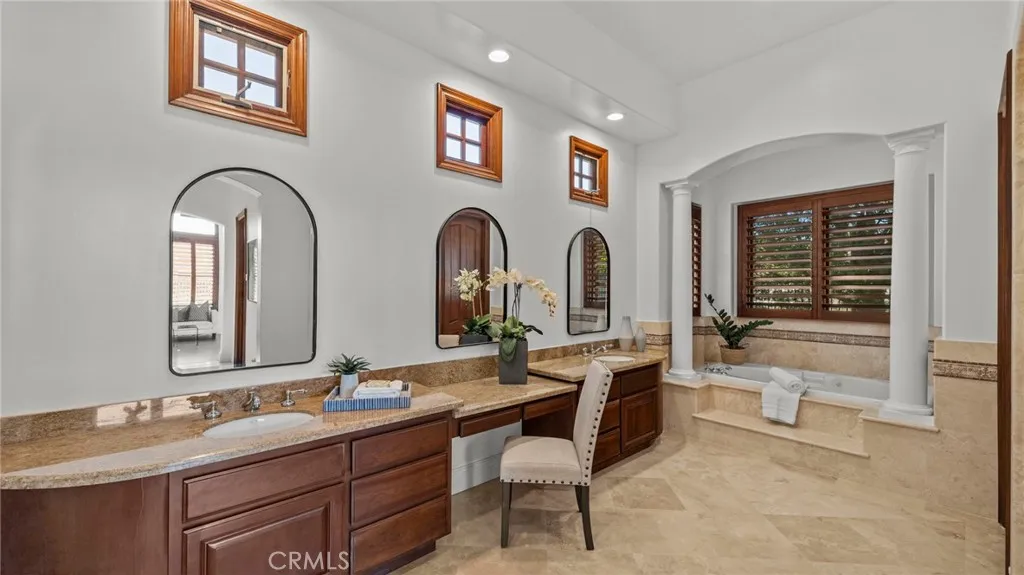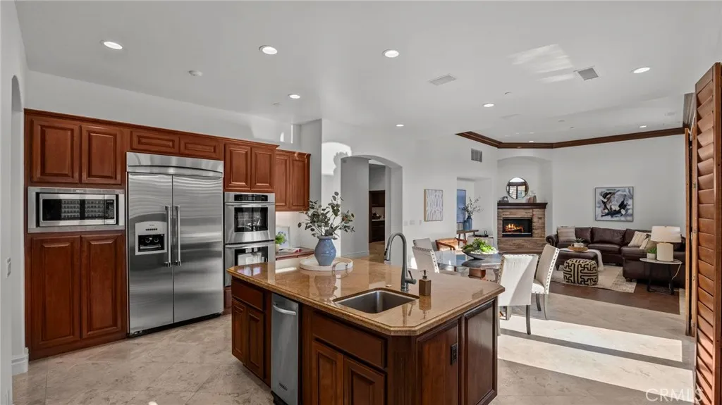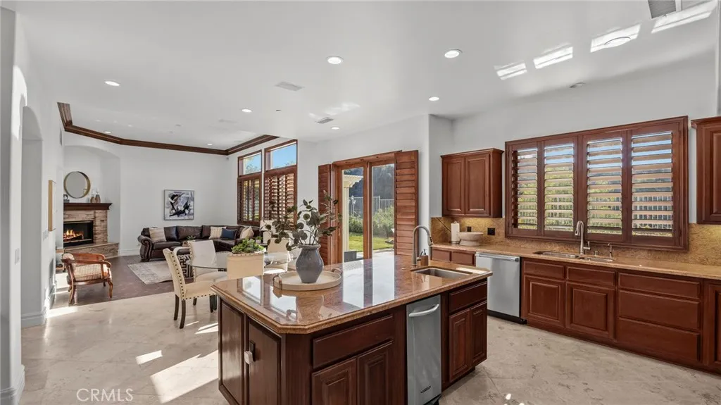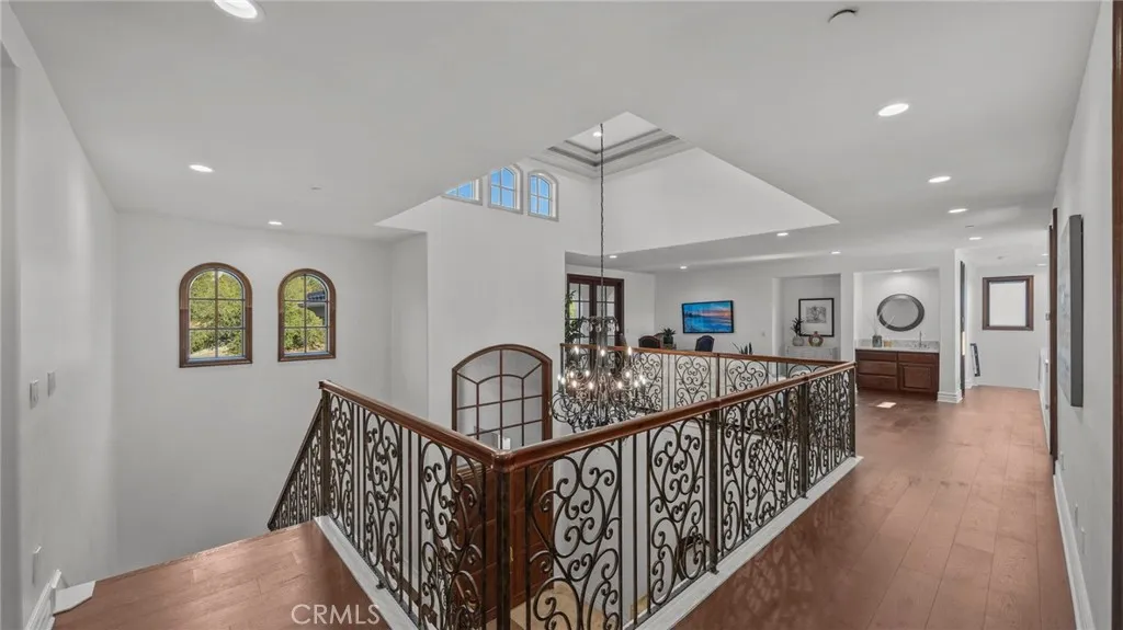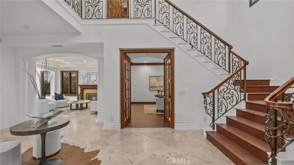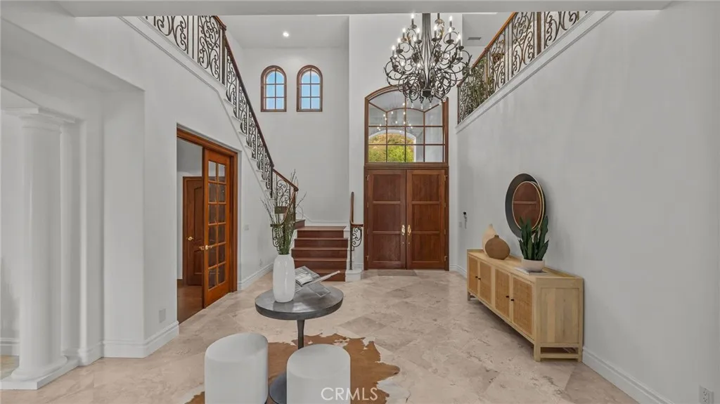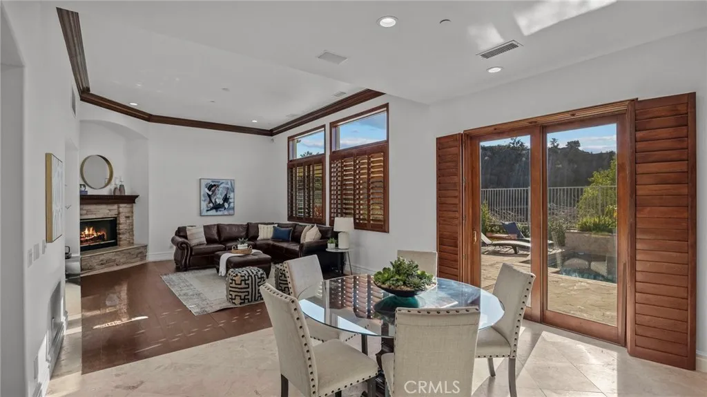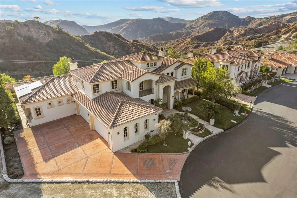 YOU DON'T WANT TO MISS THIS ONE!!! Nestled within the privately gated Falcon View Estates—one of Orange County’s best-kept secrets—this stunning 5,903 sq. ft. custom estate is perched atop a 13,680 sq. ft. cul-de-sac lot, offering unmatched privacy, luxury, and sweeping mountain views. As one of only six custom-built residences in this secluded 42-acre enclave, this home delivers an extraordinary level of exclusivity and sophistication. Designed for both grand entertaining and everyday comfort, this six-bedroom, seven-bath masterpiece boasts extensive designer upgrades throughout. The show-stopping primary suite which is downstairs is a true private sanctuary—featuring a spacious bedroom with its own sitting area, a warm natural fireplace, direct backyard and pool access, dual walk-in closets, and a spa-inspired primary bath. An additional bedroom with its own bath is located on the first floor, making this home ideal for multi-generational living or a luxurious guest retreat. The gourmet chef’s kitchen flows seamlessly into the dramatic, high-ceilinged family and dining room, where walls of windows frame panoramic views of the sparkling pool and rolling hills. Upstairs, an expansive media room is purpose-built for entertainment, complete with a custom cherry-and-quartz bar, kitchenette, and French doors that open to a covered balcony with hillside vistas. A four-car attached garage (882 sq. ft.) with epoxy floors and sectional steel doors provides ample space for your vehicles and storage needs. Recent upgrades include a fully paid solar system, fresh interior and exterior paint, new pebble-tech pool resurfacing with high-efficiency heater, brand-new hardwood flooring on both levels, updated bathrooms with quartz counters and modern fixtures, and custom wood shutters throughout. Beyond the home’s luxurious interior, enjoy direct access to Whiting Ranch Regional Park and Cleveland National Forest, where hiking, mountain biking, and equestrian adventures await. The rare low-density development of Falcon View Estates ensures lasting exclusivity while maintaining convenient access to SR-241, just minutes away—offering seamless connectivity to all of Orange County. This is more than a home—it is a private retreat, thoughtfully designed and meticulously upgraded for those who demand the very best. Schedule a showing today and experience the perfect blend of luxury, privacy, and nature.