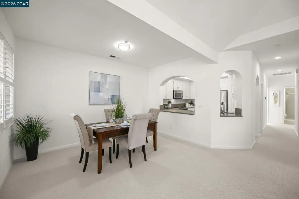 Downtown Danville! Highly sought-after Danville Oaks end unit with rare Las Trampas facing views. This beautifully updated 3-bedroom, 2-bath, 1,392 sq ft condo is bathed in natural light and features one of the premier balcony view settings in the community.The kitchen showcases granite countertops and backsplash, Whirlpool stainless steel dishwasher, refrigerator, oven, and 5-burner electric range, a matching stainless steel sink, and a large skylight that brightens the space. Recent upgrades include brand-new carpet, freshly painted interiors, new LED ceiling lighting, and luxury laminate flooring in the entry, kitchen, laundry, and bathrooms. Comfort meets efficiency with newer Lennox A/C and furnace systems paired with high-end smart wall controls. Ideally located just blocks from Downtown Danville, enjoy acclaimed restaurants, shopping at Danville Square, award-winning schools nearby, and direct access to the Iron Horse Trail for endless outdoor recreation. A rare opportunity to own in one of Danville’s most sought-after locations—welcome home! Views: Ridge