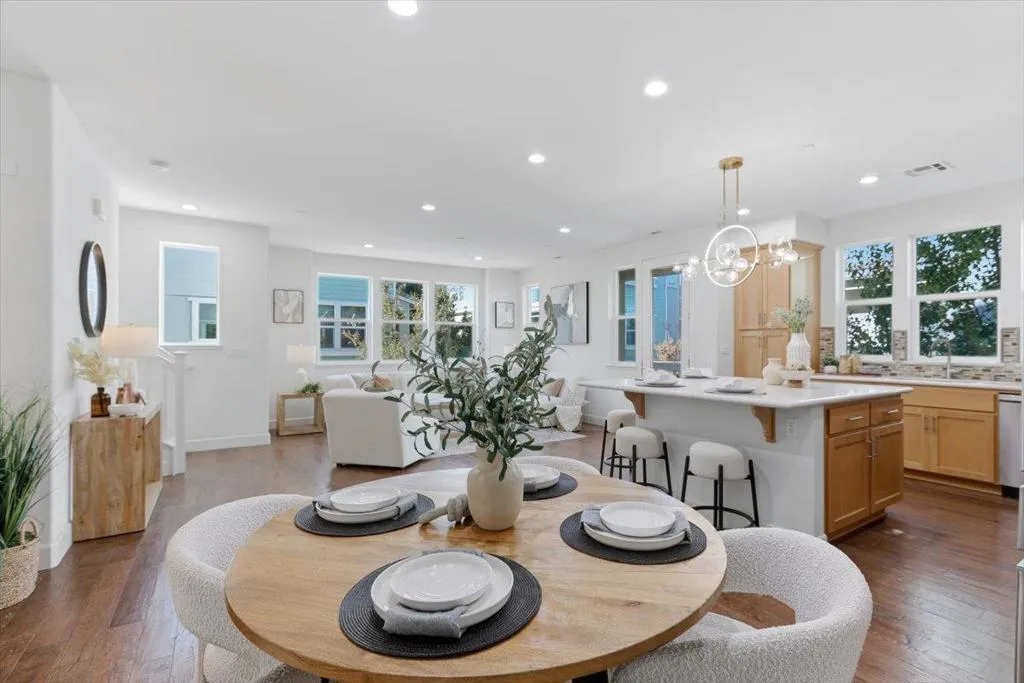 Beautiful 2017-built end-unit townhome in prime Sunnyvale! This bright and modern 3-bedroom, 3.5-bath home (1,653 sq ft) offers an open-concept layout with abundant natural light and approximately $75k in builder upgrades, including hardwood flooring in the kitchen/living room area. The gourmet kitchen features expansive counter space and flows seamlessly into the family room perfect for entertaining. Energy-efficient home: HVAC has dual zone control!
