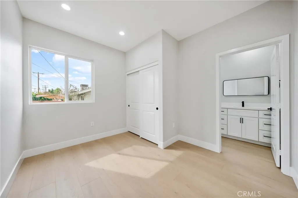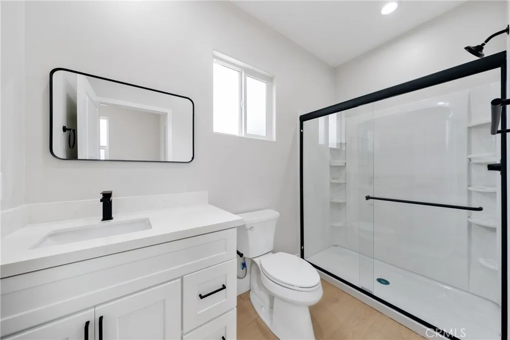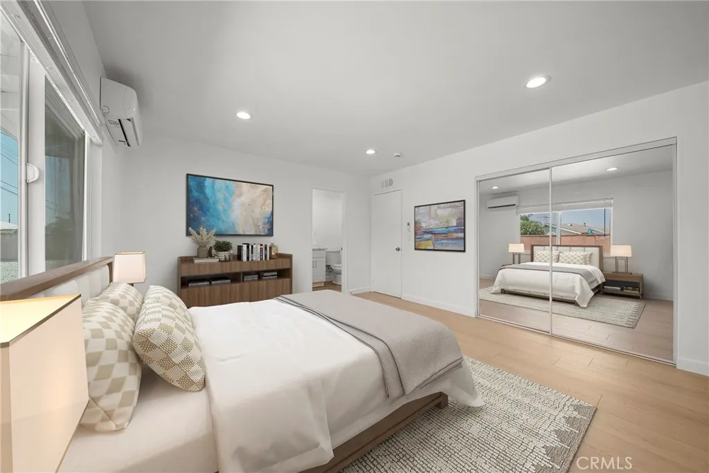 Detached with a separate entrance, this permitted ADU offers an open layout with modern cabinetry, quartz countertops, appliances, vinyl flooring, walk-in closets, washer/dryer hookups, and solar panels.