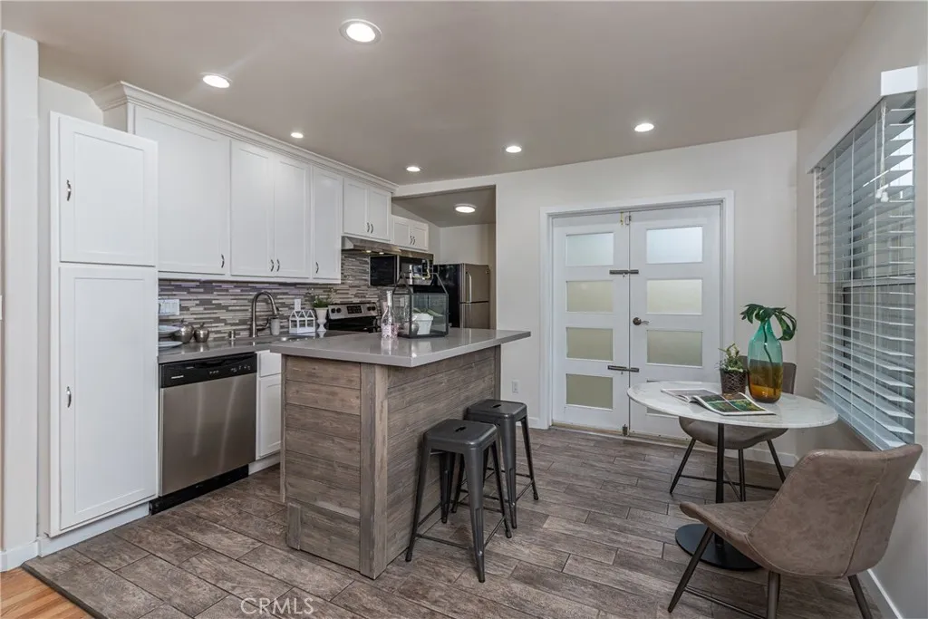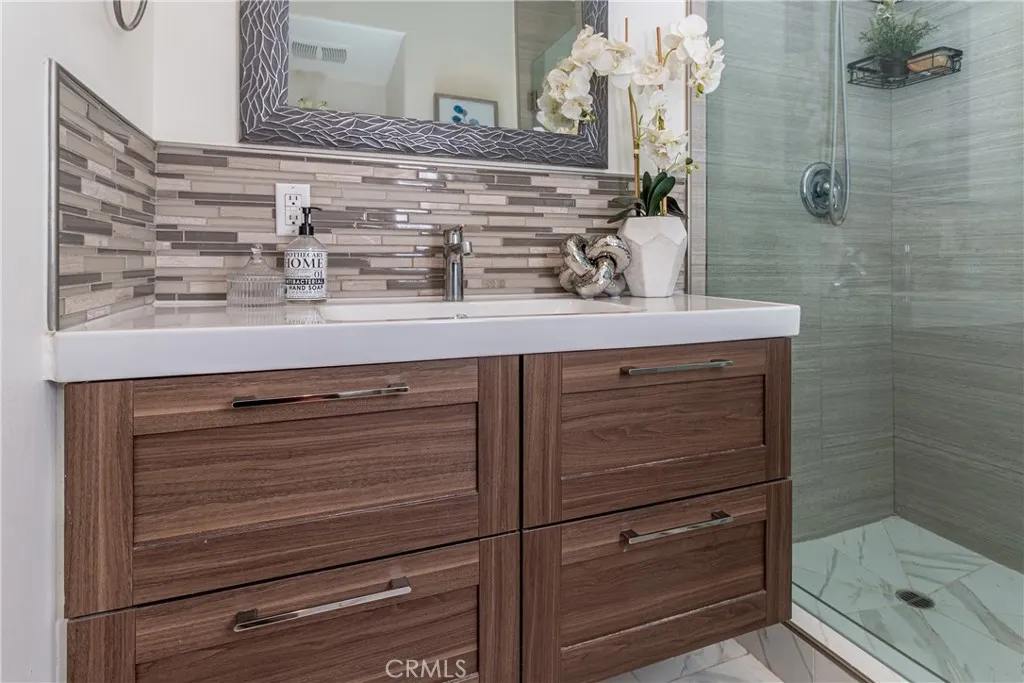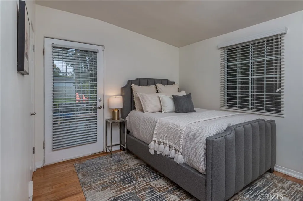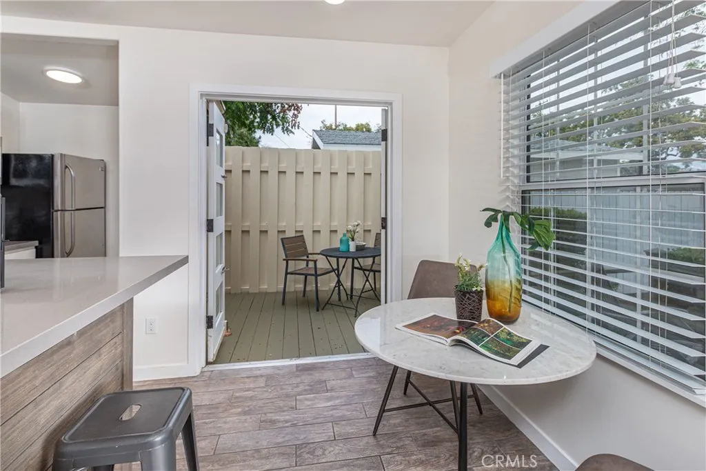 Just off the kitchen, a quaint and private patio creates the perfect setting for morning coffee, al fresco dining, or a quiet glass of wine in the evening, a peaceful extension of the home that adds both charm and everyday livability. Both bedrooms offer a serene retreat and feature the rare luxury of direct private access to the backyard, creating a seamless indoor-outdoor connection and a sense of personal escape that is truly special. The primary bath showcases a beautifully remodeled walk in shower with contemporary finishes that feel elevated yet understated.
