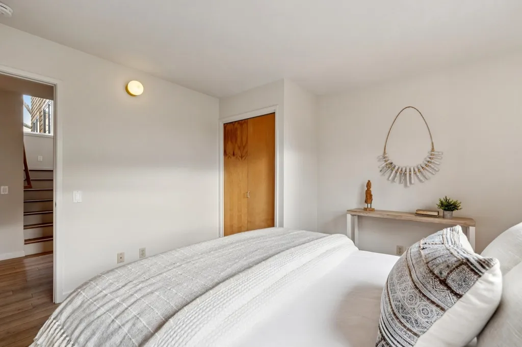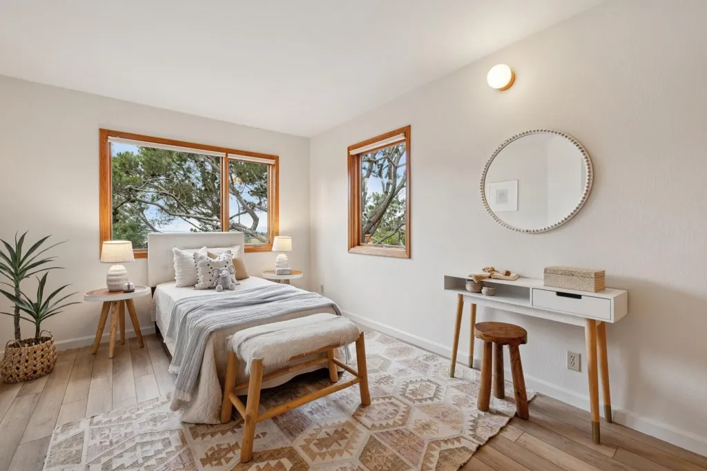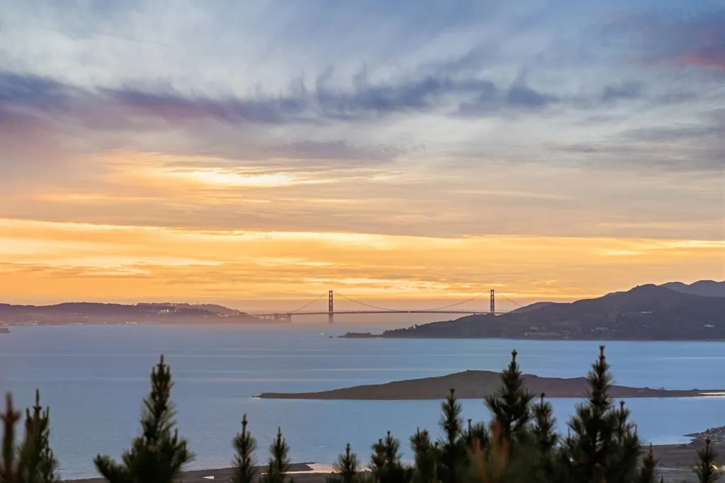 Striking 4BD/2.5BA contemporary home tucked away on a sought after El Cerrito cul-de-sac with unobstructed, panoramic Bay views. The main level offers an airy open floor plan with high ceilings, clerestory windows, and a spacious living room anchored by a central fireplace. A chef’s kitchen connects seamlessly to the dining room and opens to a private deck, ideal for BBQs, sunset cocktails, and lingering afternoons. The lower level features a serene primary suite with a spa-like bath complete with heated floors, floating vanity, and a custom walk-in closet. Two additional bedrooms, a hall bath, and a dedicated laundry room complete this floor. A large flex space with storage can be used as a fourth bedroom or den. At the bottom of the property, a separate-entry office or studio offers excellent work-from-home or creative potential. An attached two-car garage with built-in storage adds everyday convenience. Upgrades include owned solar, a new roof in 2025, and expanded front deck. Ideally located near Madera Elementary, AC Transit, BART, and El Cerrito’s parks and open spaces.