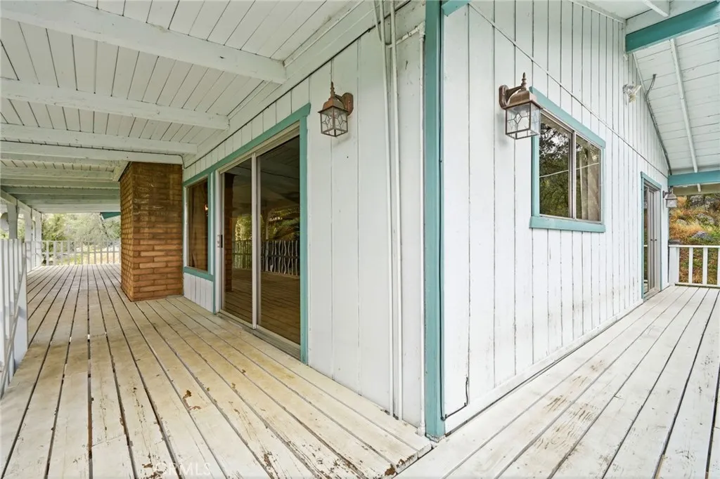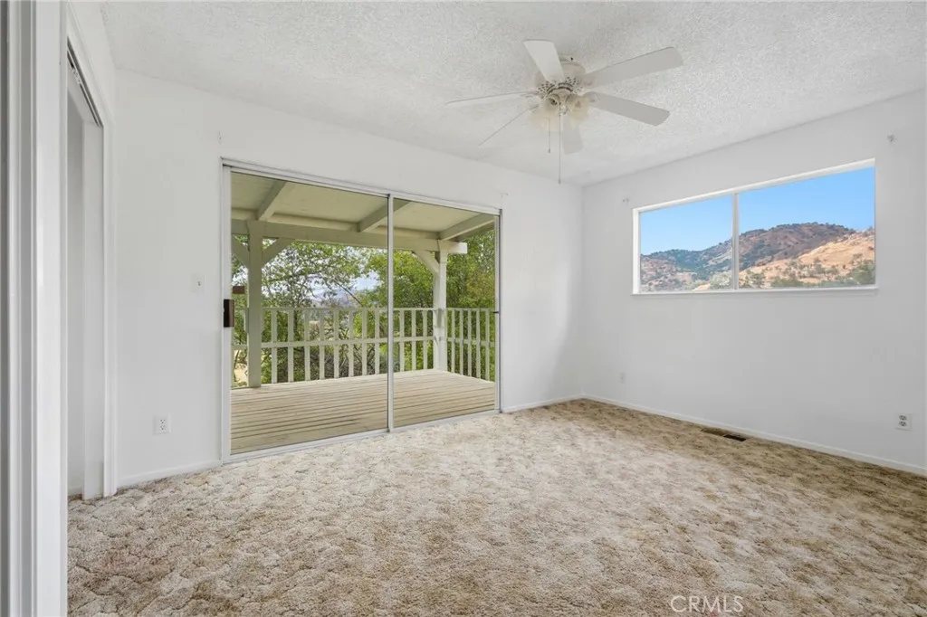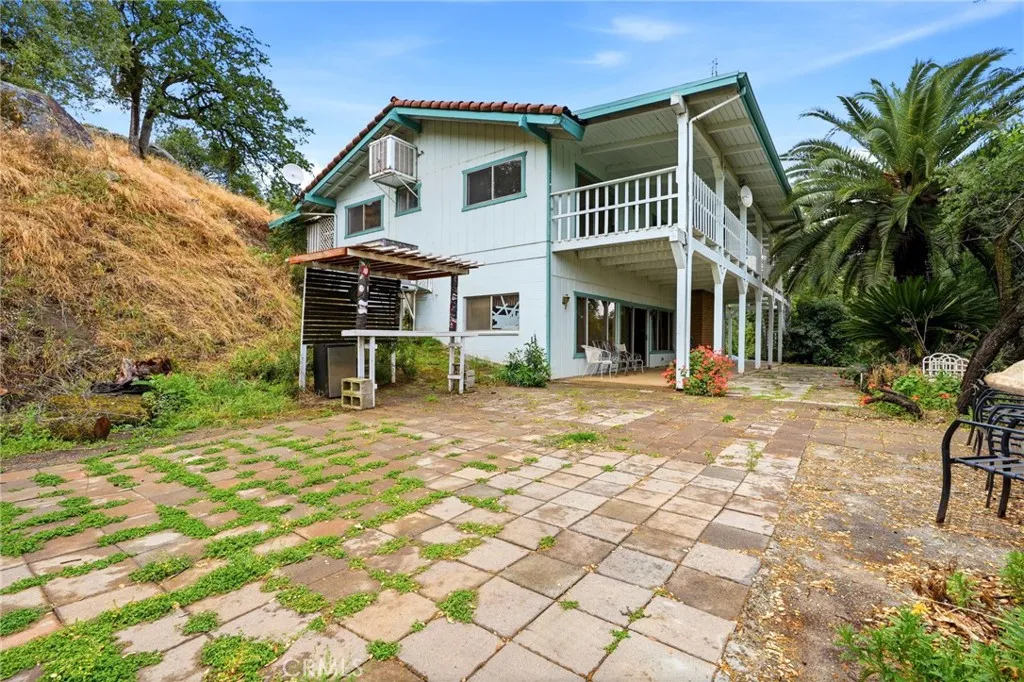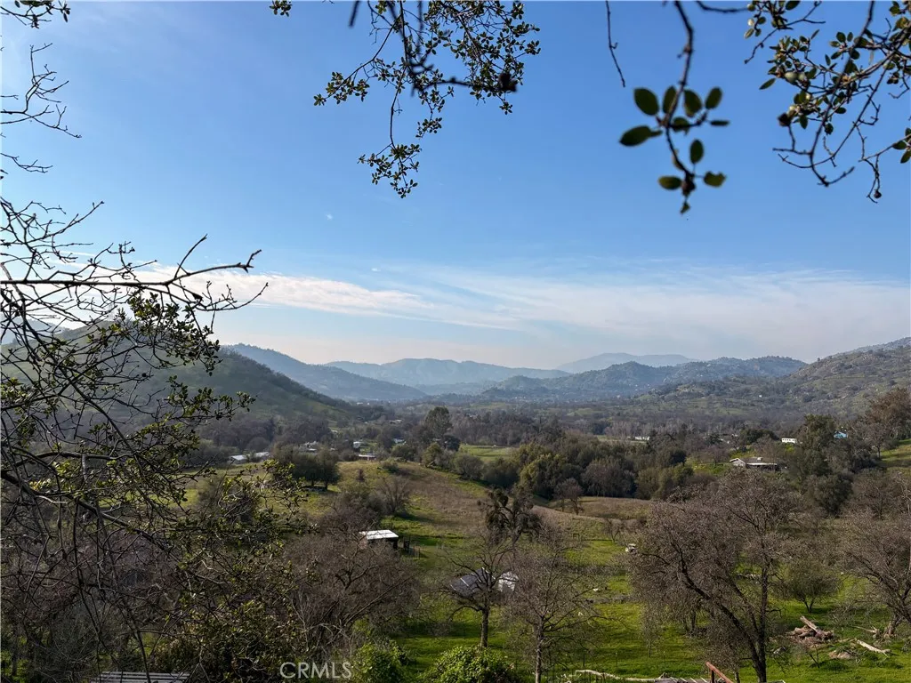 This custom 2,688-square-foot 2 story home is situated on 6.27 total gently rolling, mostly fenced and cross-fenced acres at the end of a private cul-de-sac. The main level offers a spacious open floor plan with a roomy kitchen featuring an island breakfast bar that opens to a huge great room with rustic cathedral wood beamed ceilings and a unique adobe fireplace. All bedrooms, including the isolated primary suite, are located on the upper level to provide a quiet retreat, with access to covered wrap-around decks that showcase breathtaking sunsets and vast mountain views. The lower level consists of a massive family room with its own corner fireplace, wet bar, storage space & wood accents, leading to an oversized attached two-car garage and a convenient half-bath. This property is built for efficiency with a 18 kW solar PPA that includes two Tesla Powerwall batteries, a durable tile roof, and a newer HVAC unit. Beyond the main residence, the land includes a paved driveway with a security gate, a separate 10' x 12' finished building with power and a loft, a chicken run, and a productive private well. The terrain is ideal for grazing and is dotted with mature oak trees, large rock outcroppings, and multiple outdoor entertaining areas perfect for taking in nights under open starry skies. Enjoy a creek that flows through the lower portion of the property, typically year round, creating a peaceful getaway with waterfalls and fig trees. This residence offers a complete package for those seeking a functional homestead with plenty of workspace and minimal utility costs, all while being located within an hour of the Kings Canyon and Sequoia National Park entrances, with Central Valley shopping and the local Country Store just minutes away. Come claim this beauty while it lasts.