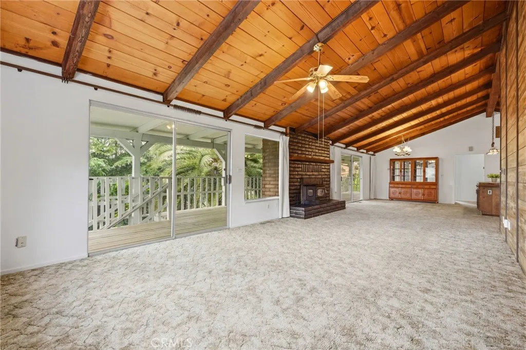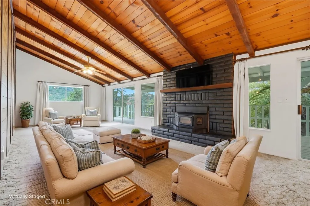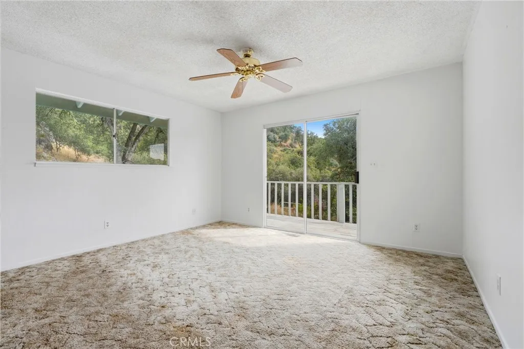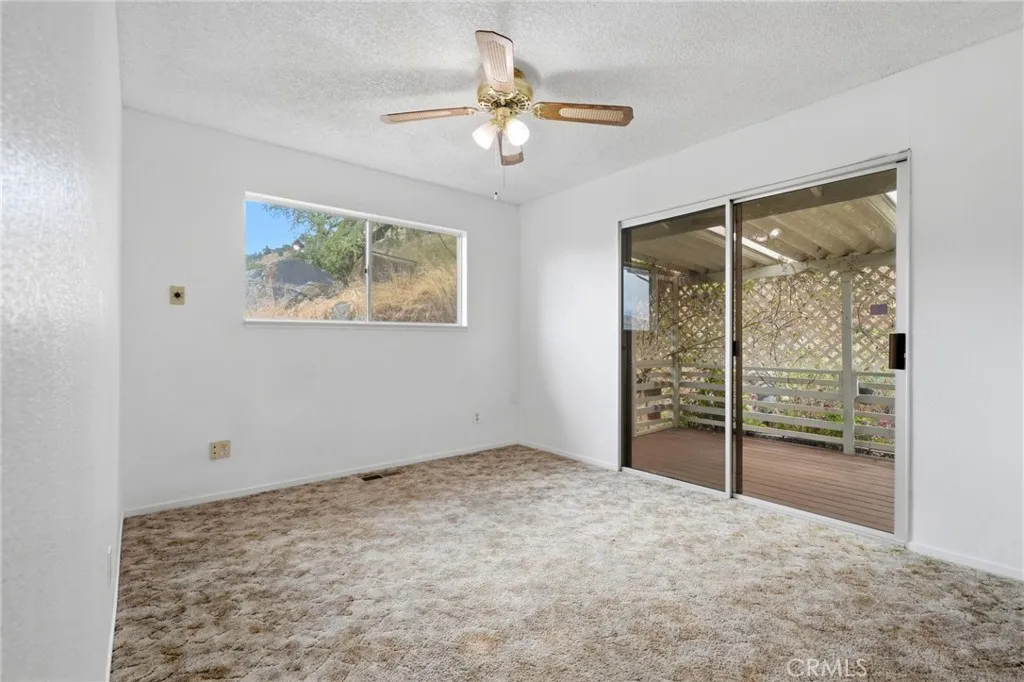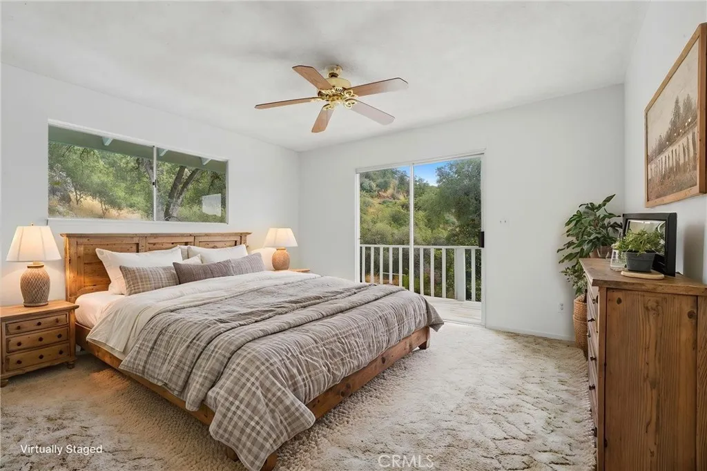 This custom 2,688-square-foot 2 story home is situated on 6.27 total gently rolling, mostly fenced and cross-fenced acres at the end of a private cul-de-sac. The main level offers a spacious open floor plan with a roomy kitchen featuring an island breakfast bar that opens to a huge great room with rustic cathedral wood beamed ceilings and a unique adobe fireplace. All bedrooms, including the isolated primary suite, are located on the upper level to provide a quiet retreat, with access to covered wrap-around decks that showcase breathtaking sunsets and vast mountain views. The lower level consists of a massive family room with its own corner fireplace, wet bar, storage space & wood accents, leading to an oversized attached two-car garage and a convenient half-bath. This property is built for efficiency with a 18 kW solar PPA that includes two Tesla Powerwall batteries, a durable tile roof, and a newer HVAC unit. Beyond the main residence, the land includes a paved driveway with a security gate, a separate 10' x 12' finished building with power and a loft, a chicken run, and a productive private well. The terrain is ideal for grazing and is dotted with mature oak trees, large rock outcroppings, and multiple outdoor entertaining areas perfect for taking in nights under open starry skies. Enjoy a creek that flows through the lower portion of the property, typically year round, creating a peaceful getaway with waterfalls and fig trees. This residence offers a complete package for those seeking a functional homestead with plenty of workspace and minimal utility costs, all while being located within an hour of the Kings Canyon and Sequoia National Park entrances, with Central Valley shopping and the local Country Store just minutes away. Come claim this beauty while it lasts.