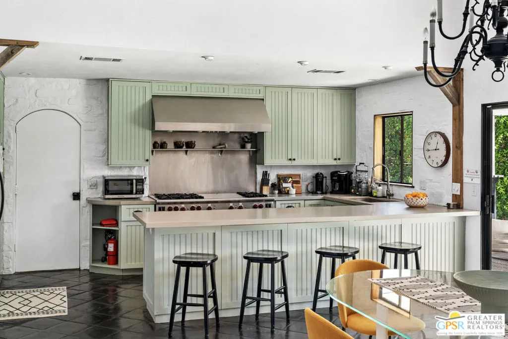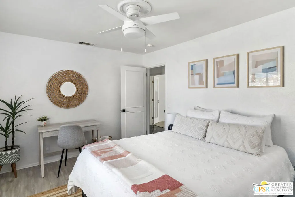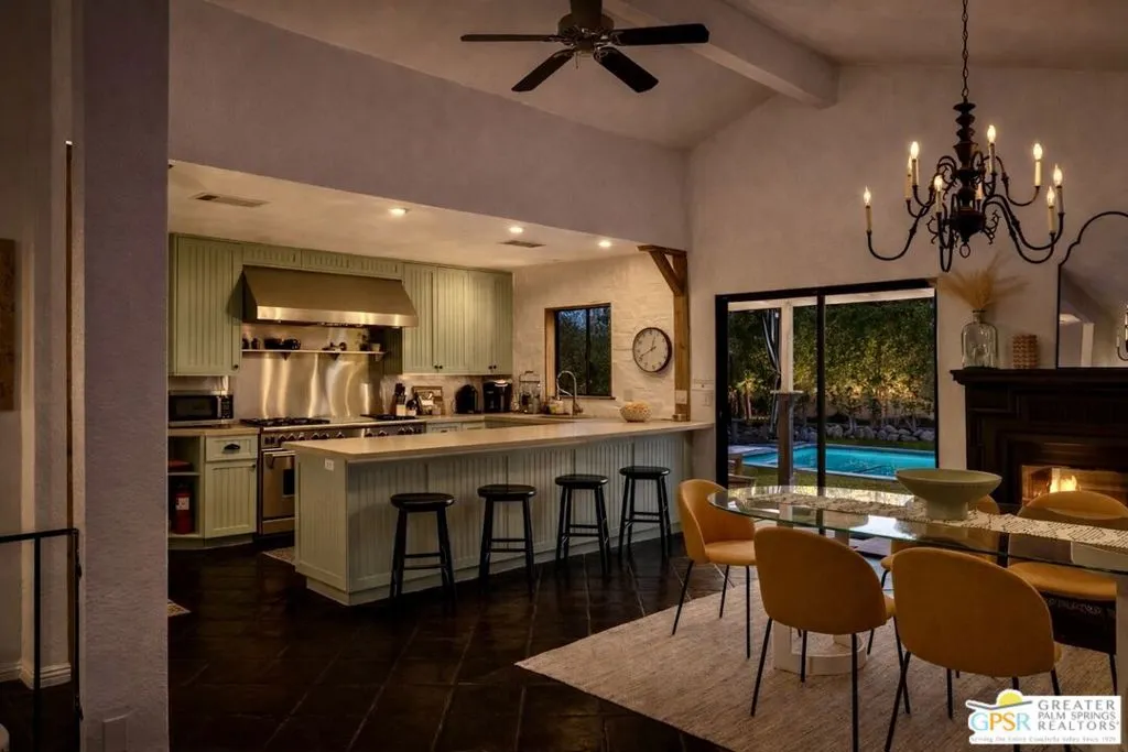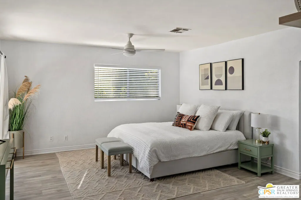 One of Desert Park Estate's most compelling offerings just became even more accessible. This Spanish Modern residence sits on a private corner lot and delivers the full Palm Springs lifestyle from day one. Thoughtfully maintained and move-in ready, this is the desert retreat you've been waiting for. RESORT-STYLE OUTDOOR LIVING: The backyard is the centerpiece. A newly updated pool with sun deck, pergola, custom water features, and lush landscaping create a private oasis perfectly framed by sweeping, unobstructed San Jacinto Mountain views. Whether you're hosting a sunset dinner party or unwinding after a morning on the links, this outdoor space delivers. CHEF'S CULINARY SHOWPIECE: The kitchen is anchored by a WOLF commercial-grade gas range (6 burners, griddle, double ovens), professional-grade hood, and a massive commercial side-by-side refrigerator and freezer. Designed for the serious home cook and the effortless entertainer alike. CLIMATE AND EFFICIENCY UPGRADES: Brand new A/C system, energy-efficient evaporative cooler, new water heater, and updated lighting throughout. Inquire with the listing agent to learn more about the extensive improvements the seller has made to this property.THE FLOOR PLAN: Light-filled and open with high ceilings, elegant Spanish tile flooring, and a flexible bonus area perfect for a home office or creative studio. The primary suite offers direct pool access and a spacious walk-in closet. Two additional bedrooms are thoughtfully appointed for guests or extended stays. THE PALM SPRINGS LIFESTYLE: You are minutes from everything that makes Palm Springs one of California's most sought-after destinations. World-class golf at courses like Tahquitz Creek and Desert Princess. Acclaimed dining along Palm Canyon Drive. The McCallum Theatre, the Palm Springs Art Museum, Modernism Week, and the Coachella Valley's legendary festival scene. Hiking and aerial tramway adventures at Mt. San Jacinto State Park. Boutique shopping, spa retreats, and a vibrant nightlife scene that draws visitors from around the world. Designer furnishings negotiable outside of escrow.