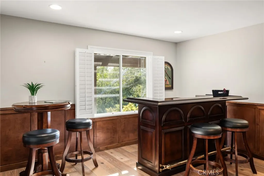 Commanding a premier elevated setting in Fallbrook’s coveted Gird Valley, this beautifully reimagined single-story estate offers breathtaking orchard and valley views, privacy, and resort-style living on approximately 2.68 acres. Thoughtfully renovated with timeless design and modern comfort, the home delivers a true retreat-like lifestyle designed for both entertaining and everyday living. The expansive interior features brand-new Provenza wood flooring, fresh interior paint, beamed and cathedral ceilings, and high-end finishes throughout. A dramatic dual-sided fireplace connects the main living area to an impressive 26’ x 26’ bonus/game room with a built-in dual-workstation office nook, separate media/storage closet, and speakers throughout the home and backyard for seamless indoor-outdoor living. The private primary suite is a serene retreat with a spa-inspired bathroom and a sun-filled sitting room just off the bedroom. Recent upgrades include an updated guest bathroom with quartz counters and new flooring, zoned HVAC, dual-pane windows, smart thermostats, smart locks, and a full security system with five Ring floodlight cameras. Outdoor living is exceptional, featuring multiple patios, terraces, and view decks, a resort-style pool and spa with Pentair controls, both gas and wood-burning fire pits (including one on the lower deck), three outdoor fountain features, professionally lit patios, mature palms, and a newly added Zen garden. The lush grounds create a true garden-to-table lifestyle with an established avocado orchard (approximately 129 trees), along with apple, navel orange, blood orange, Valencia orange, grapefruit, lime, lemon, plum, and strawberry guava trees, plus a thriving herb garden and rare plant specimens. Additional highlights include a charming porte-cochère entry, circular driveway, three-car garage, RV access/parking, storage sheds and cabana structures. The lower portion of the property offers excellent ADU potential with a separate grove road allowing for a possible private entry or driveway. Turnkey, private, and impeccably maintained, this is a rare opportunity to own a Gird Valley estate offering land, views, amenities, and an exceptional lifestyle.