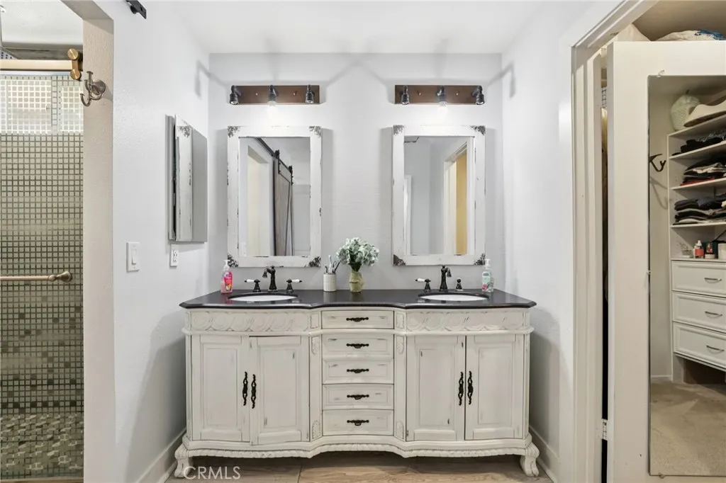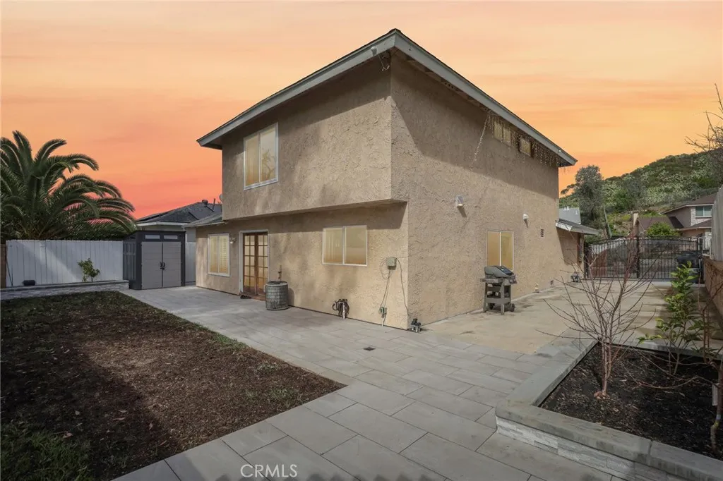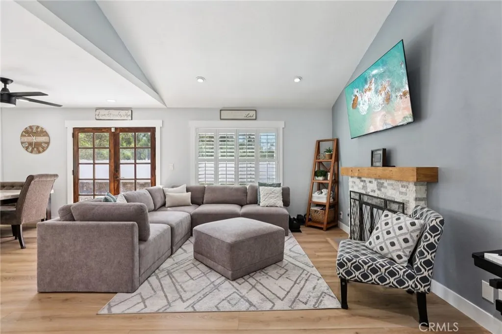 Located on a private cul-de-sac with no rear neighbors, this beautiful 4-bedroom, 3-bathroom home at 27172 Valleymont blends modern luxury with a highly functional layout. The light-filled, open-concept interior features a fully remodeled kitchen with granite countertops and a farmhouse sink, alongside a desirable downstairs bedroom and full bathroom perfect for guests. High-end upgrades like plantation shutters, a tankless water heater, and a primary suite with a custom barn door elevate the living space. A low maintenance backyard and a fenced-in front yard are great spaces for entertaining or just enjoying the outdoors. French doors lead to an entertainer’s patio overlooking mature trees in the adjacent park. Complete with an oversized driveway offering RV/boat parking and the rare financial benefit of no HOA or Mello-Roos fees, this property offers exceptional value within walking distance of Trabuco Hills High School.