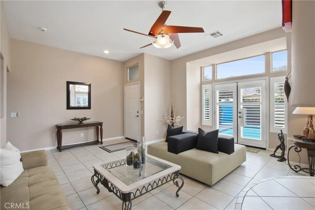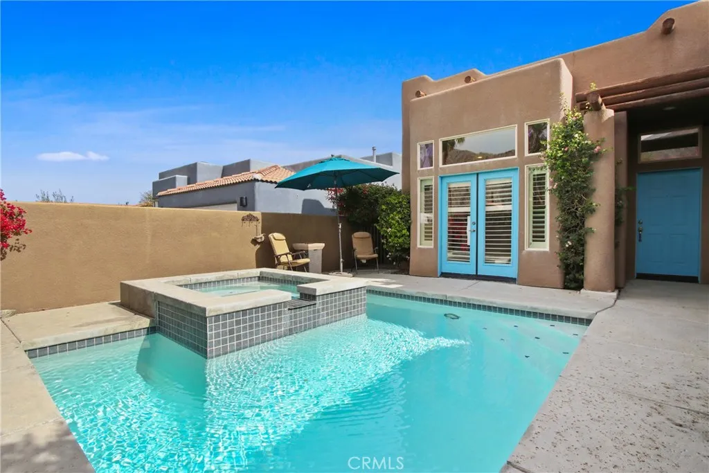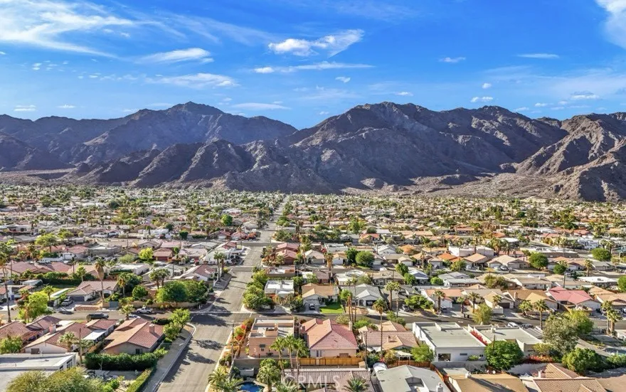 SPACIOUS Santa Fe Style home with 3 bedroom 2 bath and a den/office located high in the Historical La Quinta Cove with NO HOA and MOUNTAIN VIEWS. This home features an open floor plan, high ceilings and plenty of natural light. The house has a remodeled open kitchen with stainless steel appliances, beautiful inviting french doors, a separate living room with views of the pool area, a great room/family room for entertaining, a dining area off the kitchen and a cozy den in addition to the 3 bedrooms. The large master bedroom has direct access to a private back patio and has an ensuite master bathroom with double sinks, walk-in shower and walk-in closet. The home has a 3 year old roof, insulated garage door, new range and microwave, renovated pool and spa and a surrounding tall stucco wall providing maximum privacy. This property has amazing mountain views and is only minutes from Old Town La Quinta, shops, restaurants and the Cove Walking Trails.