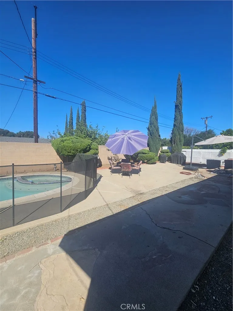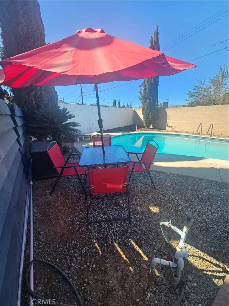 This Beautiful house located in a great area of Corona, Step inside to discover beautiful laminate flooring that compliments an open layout, seamlessly connecting the living room, Kitchen, and dinning area. The riches remodeled kitchen features quartz countertop and ample cabinet spaces, The large living room is filled with natural light and features a cozy gas fireplace and sliding glass door that open to a beautiful back yard wit a fantastic Juniper tree in front to enjoy the view, also with a great swimming pool and a very well kept area. Three good size rooms and and two bathrooms, property presents 2 car garage with laundry inside. located in a cul-de- sac with 8,276 lot size and 1228 living space. Don't miss the opportunity to own a fantastic house in the nice city of Corona.