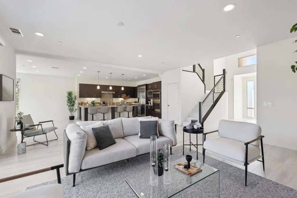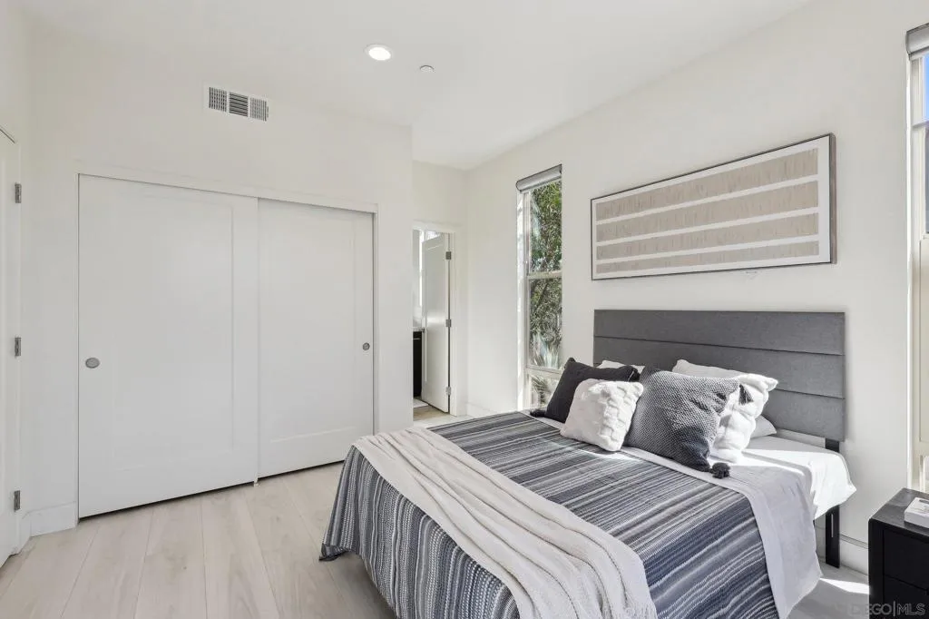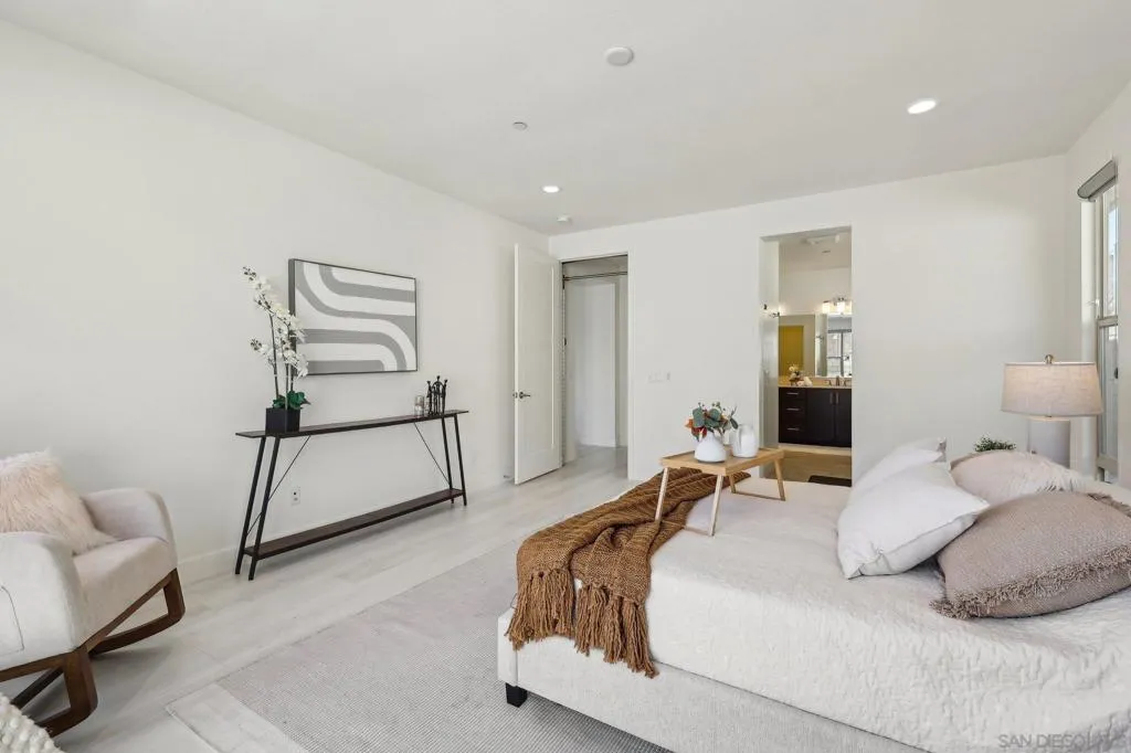 Stylish contemporary home in a desirable gated community with stunning valley views. Built in 2015, this 4-bedroom, 3.5-bath residence offers 2,576 sq. ft. of bright, open living space with soaring ceilings and a functional open-concept layout. The first floor features a private primary suite plus an additional en-suite bedroom, ideal for guests or multi-generational living. Upstairs includes two additional bedrooms offering comfort and privacy. The chef’s kitchen showcases a built-in refrigerator, granite countertops, and premium cabinetry, perfect for everyday living and entertaining. Enjoy seamless indoor-outdoor living in the spacious backyard with breathtaking views. Fully paid-off solar system adds energy efficiency and long-term value. Conveniently located near shopping, dining, freeways, and major tech hubs including Qualcomm, Google, and UCSD.