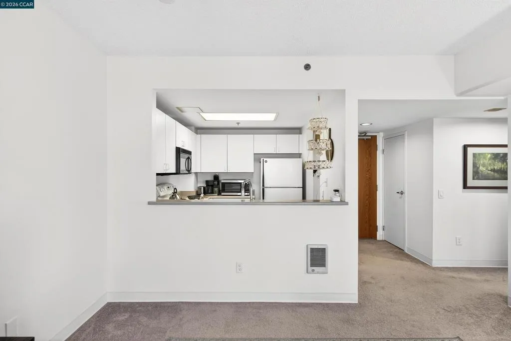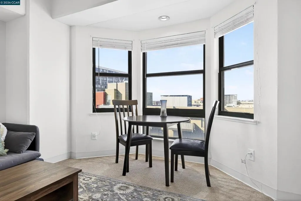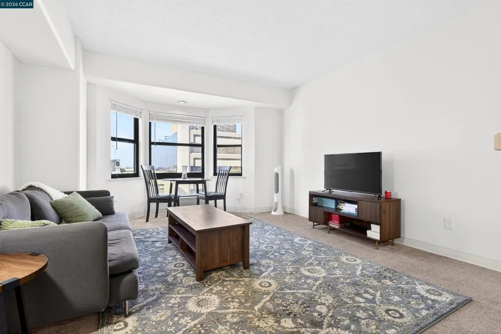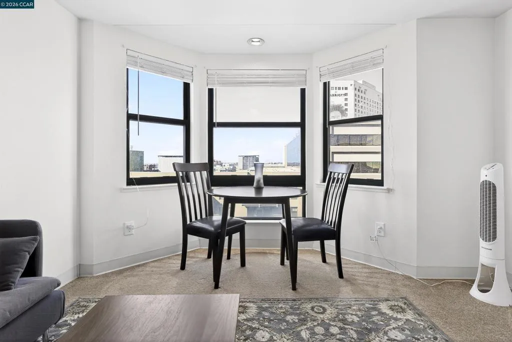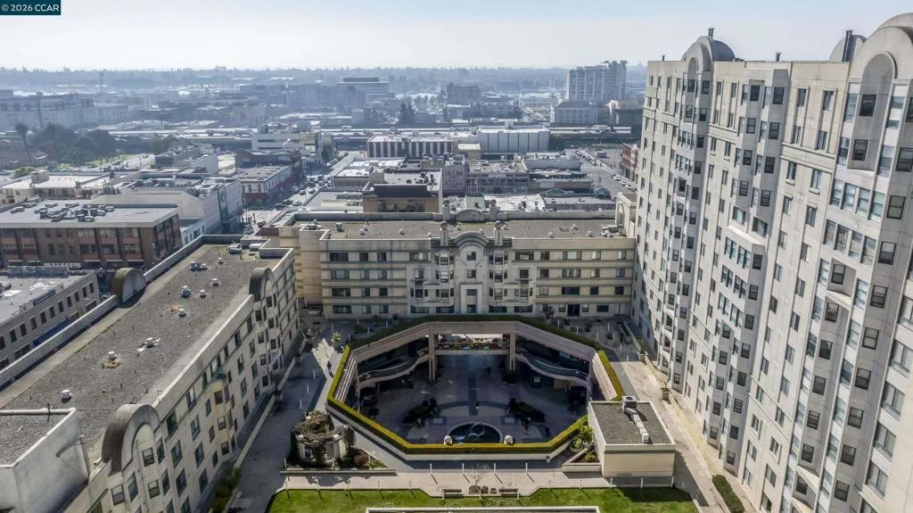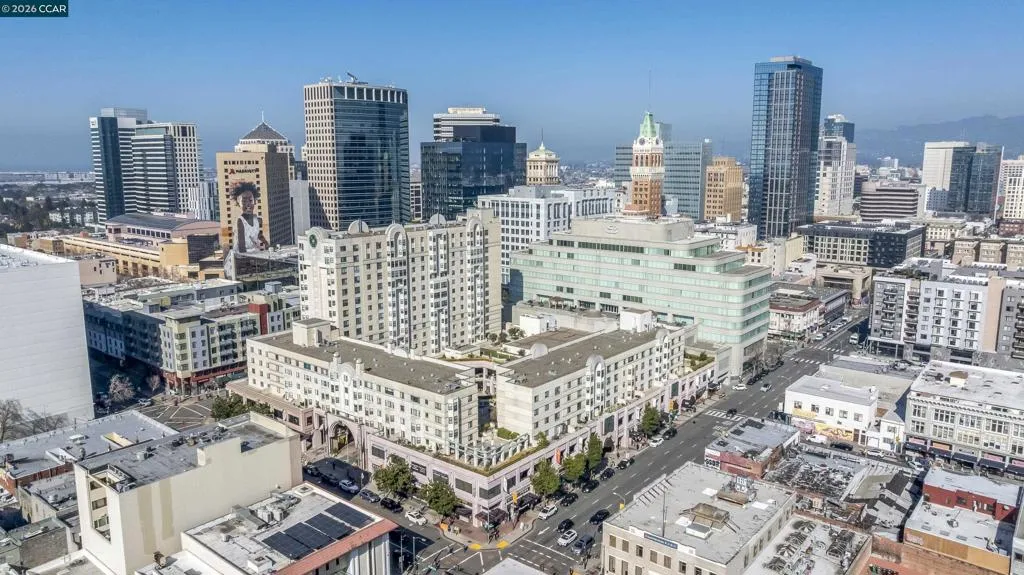 This beautifully updated 1-bedroom, 1-bath condo offers 615 square feet of bright, functional space in a well-maintained 1993 high-rise. This unit is well maintained and move-in ready at an exceptional price! Large windows fill the unit with natural light and offer views of the city. The open living, dining, and kitchen layout creates a seamless flow, while the generously sized bedroom provides ample space and storage. Enjoy the convenience of one secure, assigned garage parking space. Building amenities include elevators, laundry facilities, a rooftop garden, courtyard, and ground-floor conveniences such as a bank, restaurants, library, and health center. Just steps to BART, shopping, dining, and more... this is a rare opportunity to own an affordable, light-filled condo in one of Oakland’s most vibrant neighborhoods.