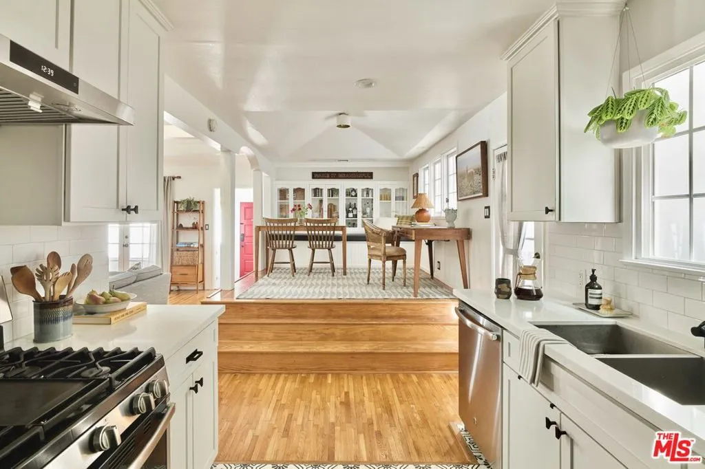 Discover your private canyon sanctuary in the sought-after Wonderland Elementary School District. This thoughtfully refreshed two-bedroom, one bath retreat offers a rare blend of modern comfort and natural beauty. Step inside to sun-drenched living spaces with soaring vaulted ceilings and rich hardwood floors. The open layout flows seamlessly from an elevated dining nook with charming original built-ins to an inviting living room. French doors open to a secluded patio with spa, perfect for relaxing and unwinding.The updated kitchen features crisp shaker cabinetry, stainless steel appliances, quartz countertops, and stylish textured tile flooring. The beautifully renovated bathroom evokes a spa-like haven with elegant tile work and custom cabinetry. Comfort and convenience are elevated with central air and heat, dedicated laundry and storage shed, and a one-car garage.The whimsical backyard is a true oasis. Cascading decks offer multiple areas for lounging, entertaining, or dining al fresco among the treesa peaceful outdoor hideaway that feels worlds away.Perfectly positioned in lower Laurel Canyon with easy access to Canyon Country Store, Pace, Trader Joe's, and Sunset Boulevard.