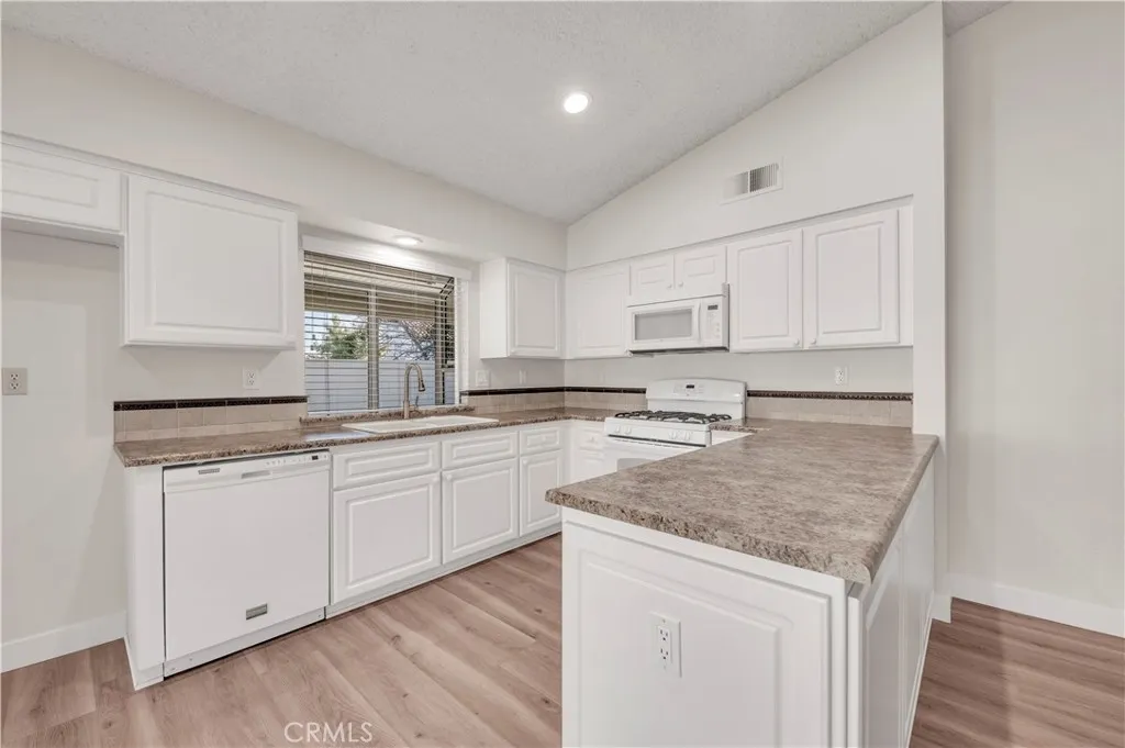 Welcome to this updated home in a peaceful 55+ neighborhood of Menifee. This turn key home underwent a recent renovation with updated flooring, baseboards, carpet, light fixtures, ceiling fans and interior paint. Upon entering you are greeted by vaulted ceilings and a cozy fireplace in a living room with numerous windows offering an abundance of natural light. Rounding out the rest of the house are three sizable bedrooms offering brand new carpet and ceiling fans, two full bathrooms, and an indoor laundry room. Venture out back and discover the large covered patio overlooking the manicured yard with the focal point being the rock water fountain. Additional details include an attached two car garage with attic storage, a driveway offering plenty of space for guests, a storage shed, and a new water heater. Conveniently located near shopping, dining, and the freeway, nearly everything you could want or need is a short drive away. Schedule your private showing today!