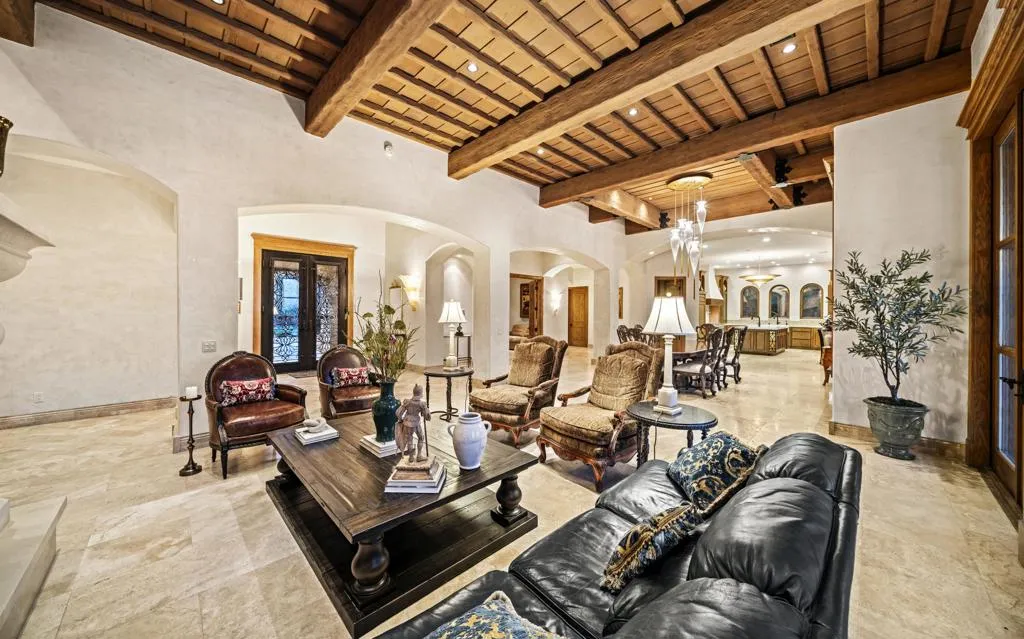Tuscan architecture and lush gardens are complimented by hand carved stonework and stunning Murano glass sconces and chandelier in this private Estate within The Reserve. An exceptional 5,487 sq. ft. home, with 4 bedrooms, 4.5 baths, offers gracious charm, function and beauty throughout. You're welcomed into the entry courtyard with soothing fountain, grand fireplace and patios for dining and relaxing. Your family and friends will enjoy their private 2 room guest suite. The entry door into this custom retreat is a work of art and opens to craftsmanship at its finest within all the indoor and outdoor living and dining areas. The primary suite has His and Her baths and walk-in closets. You will love stepping out through double doorways to one of the most spacious and beautifully designed back patios within this community! Come see Tuscany in The Reserve. The Reserve Club offers world class amenities including a Tom Weiskopf-Jay Morrish designed championship golf course, three Trophy Holes and a double-ended practice range. The Club Village includes Clubhouse; Lakehouse for casual dining; Fitness Center with exercise rooms, extensive cardio equipment, Jr. Olympic size pool, Tennis and Pickleball; and Golf Shop.