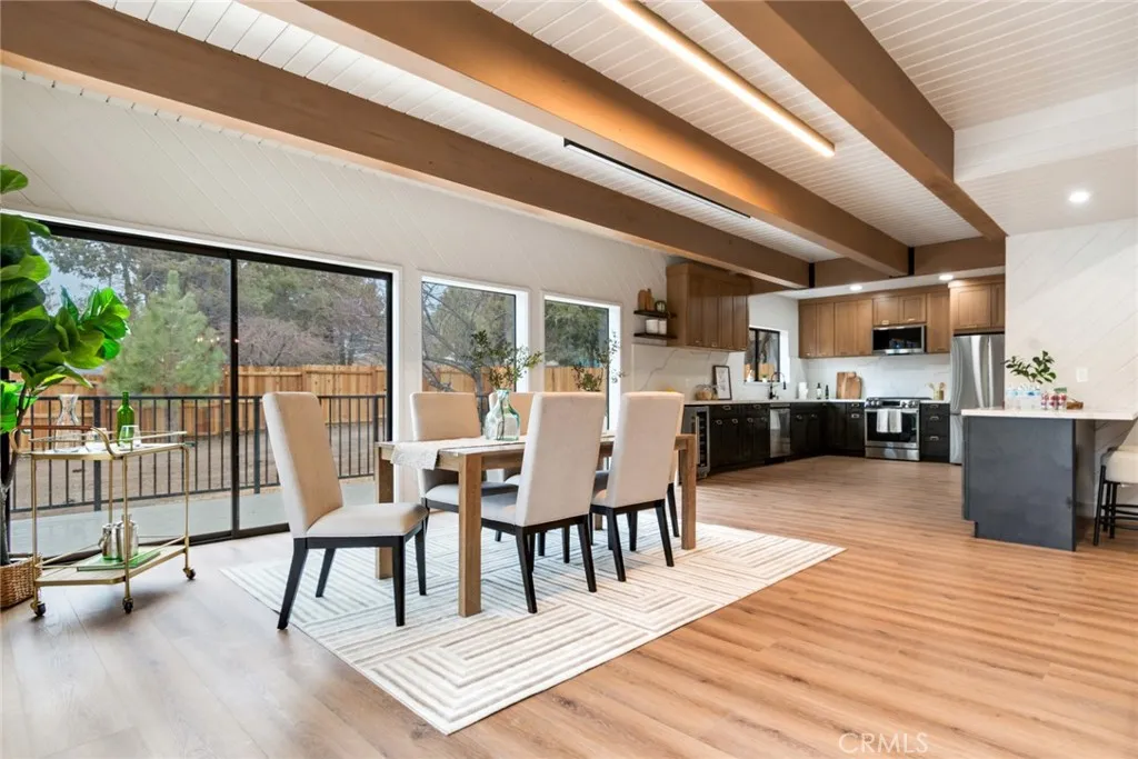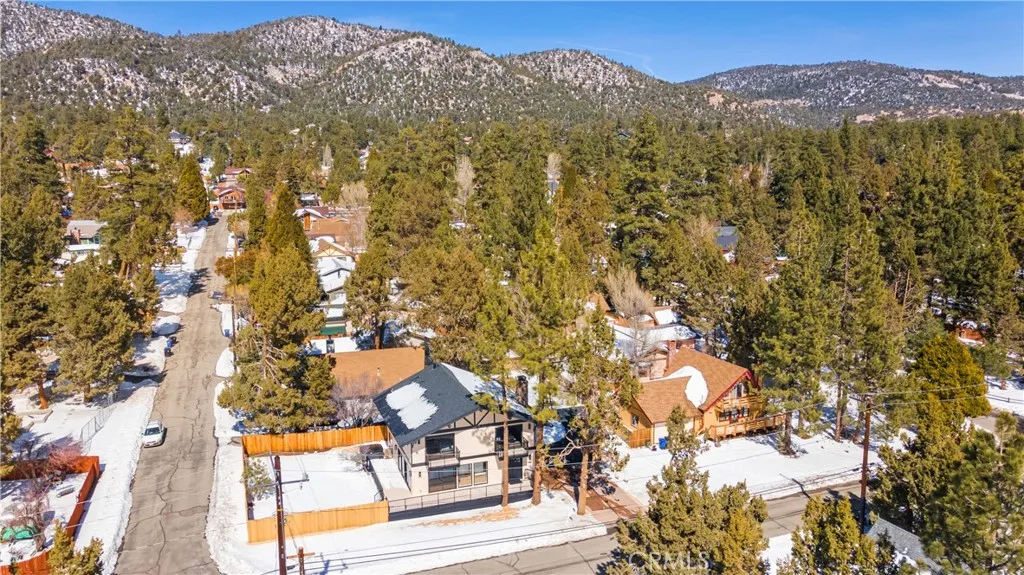 Fully renovated luxury mountain retreat just minutes to the slopes, Big Bear Lake, and The Village! This professionally designed 2,660 sq ft home offers 4 bedrooms, 3.5 baths, and a 2-car garage with brand-new systems throughout including HVAC, roof, water heater, electrical, insulation, and windows — offering lasting quality and comfort. High-end finishes include premium appliances, designer fixtures, and custom hardware. The spacious chef’s kitchen features a walk-in pantry, bar area, and wine fridge, perfect for entertaining. The primary suite boasts a private balcony with mountain and ski slope views, spa-style ensuite with double vanity, and walk-in closet. Three additional bedrooms include one with a private balcony and one with its own half bath. Bright great room with wall-to-wall windows, tongue-and-groove ceilings, original wood beams, and stone fireplace. Glass doors open to a wraparound deck, new hot tub, fenced yard, RV/boat parking, and ample space with potential for additional guest accommodations or flexible use, subject to local regulations.