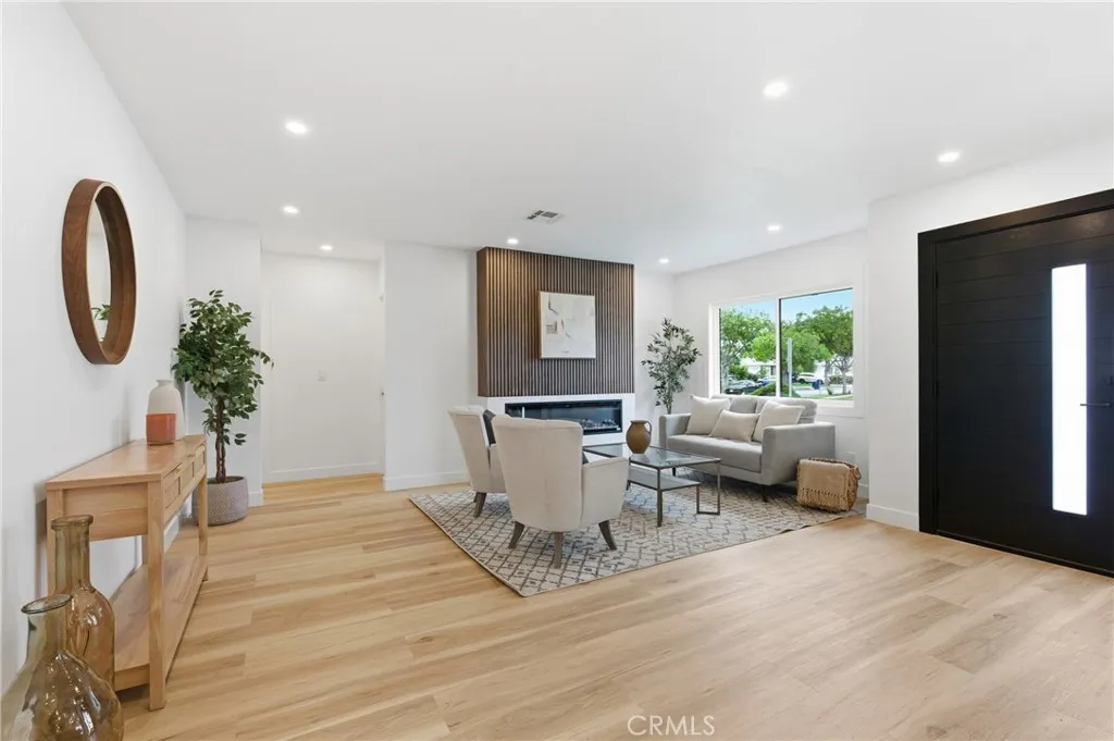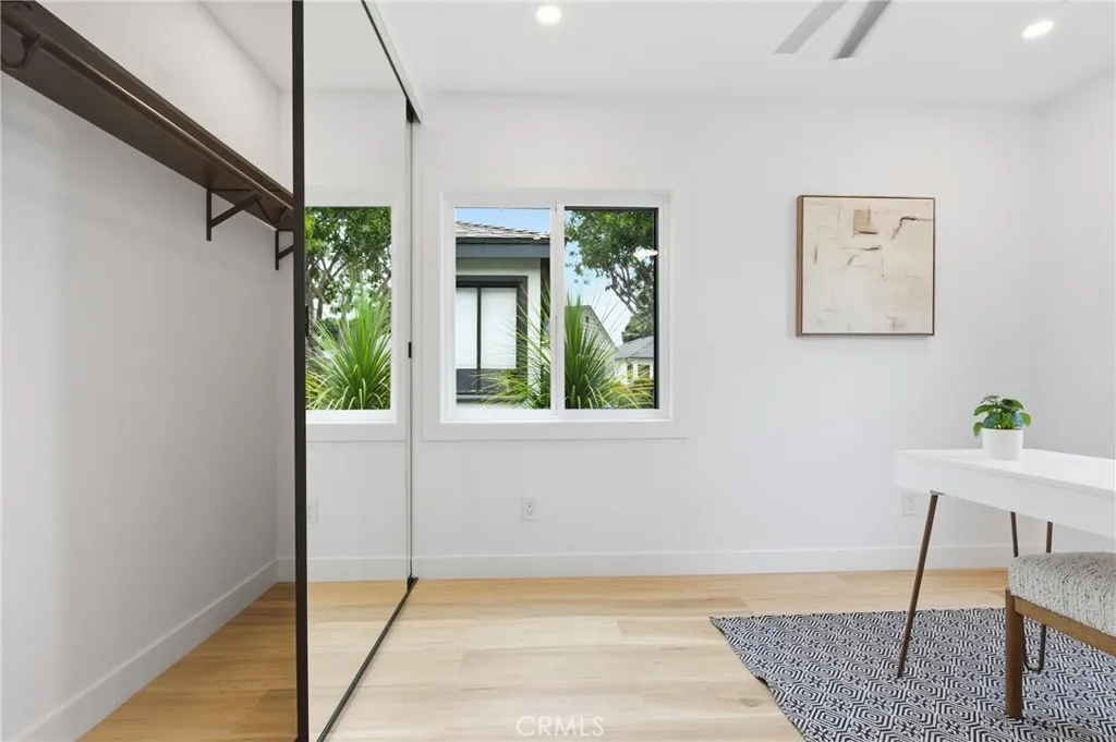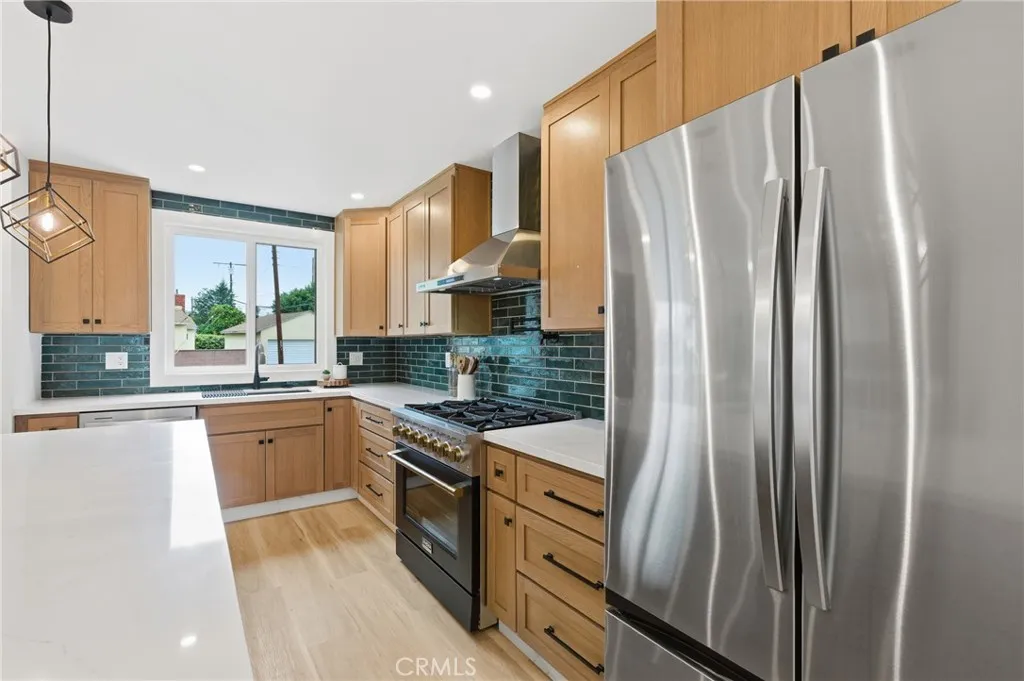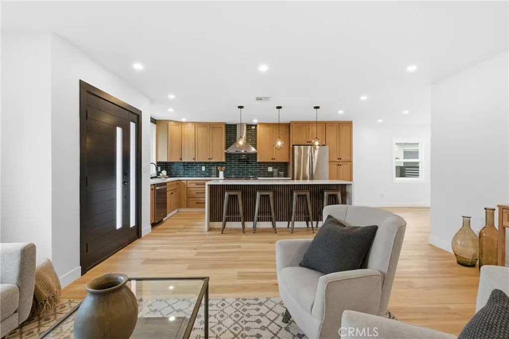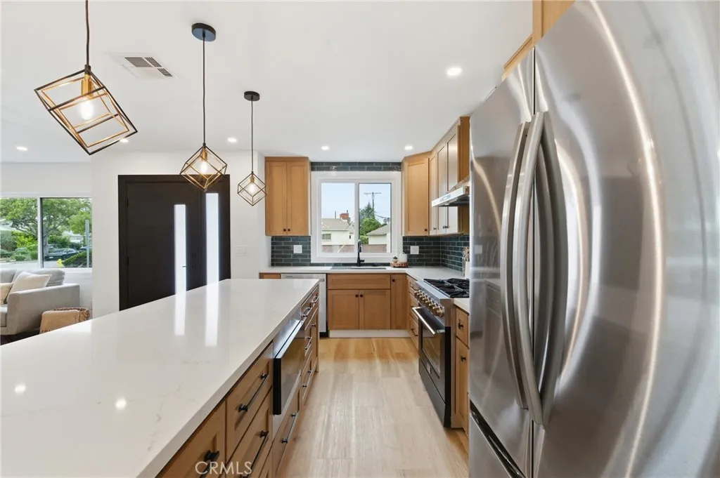 Welcome to this beautifully reimagined Santa Monica residence, thoughtfully renovated inside and out with quality finishes and modern upgrades throughout. Ideally located near the best of the Westside, this home offers close proximity to parks, dining, beaches, and access to the Santa Monica school community. The exterior has been masterfully reimagined to deliver striking curb appeal and refined sophistication. Fresh designer paint, new energy-efficient windows, custom exterior doors, and a new garage door set the tone for the home’s elevated aesthetic. A tiled entry path welcomes you in with understated elegance. The private backyard retreat features an expansive concrete patio and a custom wood pergola an ideal setting for elevated entertaining or serene relaxation. Lush hedges provide natural privacy, while a newly installed AC system ensures year-round comfort. The garage has been thoughtfully upgraded with sleek epoxy flooring, refined interior finishes, enhanced lighting, a new window, and a new entry door creating a polished and versatile space. Inside, the residence has been completely transformed with a cohesive modern design. Wood vinyl flooring flows throughout and a fully integrated recessed lighting. The designer kitchen serves as the heart of the home, featuring custom cabinetry, quartz countertops, brand-new appliances, and statement island lighting that blends form and function beautifully. A contemporary electric fireplace anchors the living space with warmth and ambiance, while sliding doors create effortless indoor-outdoor flow to the dining area. Both bathrooms have been elegantly redesigned with spa-inspired finishes. The secondary bath showcases a beautifully tiled tub surround and elevated fixtures. The primary suite offers a tranquil retreat with a custom vanity, designer lighting, a walk-in tiled shower, and a skylight that bathes the space in natural light. This turnkey residence seamlessly blends modern luxury and an exceptional Santa Monica location a rare opportunity to own a meticulously renovated move in ready home in one of the Westside’s most coveted communities.