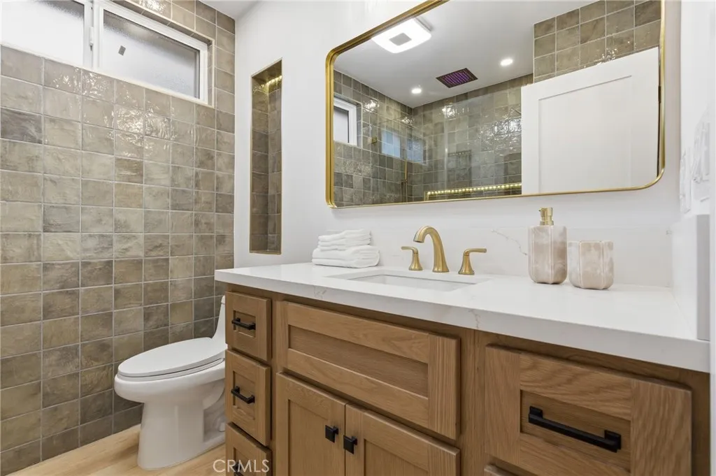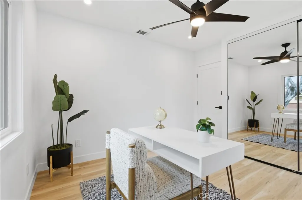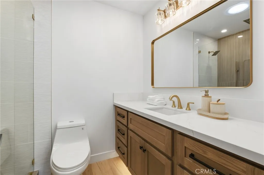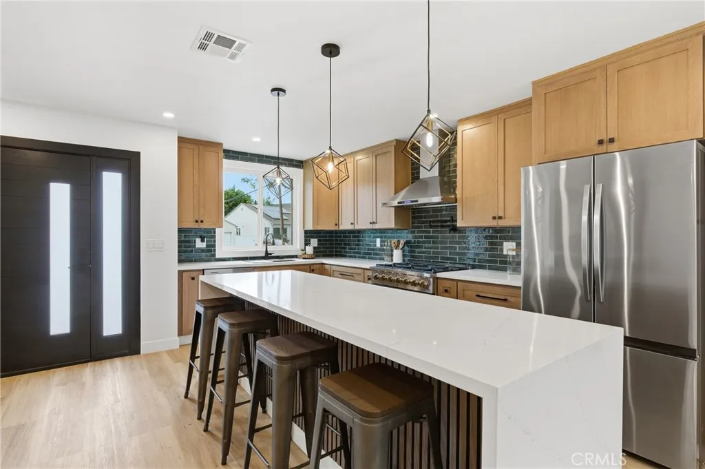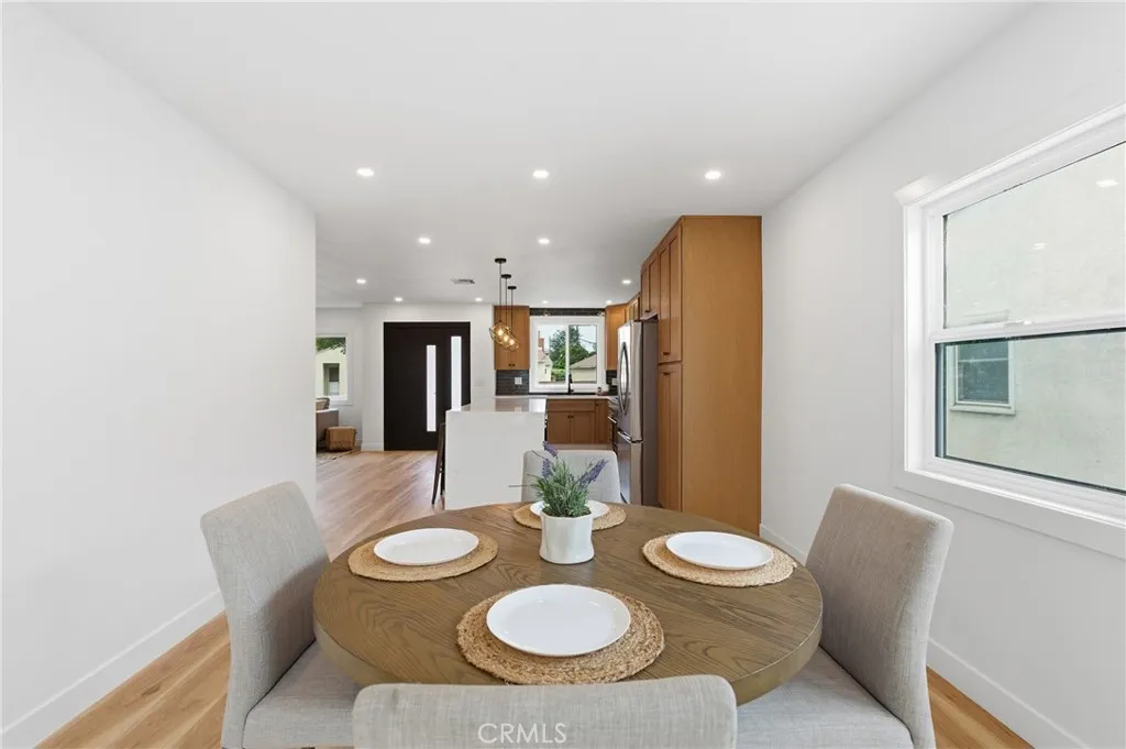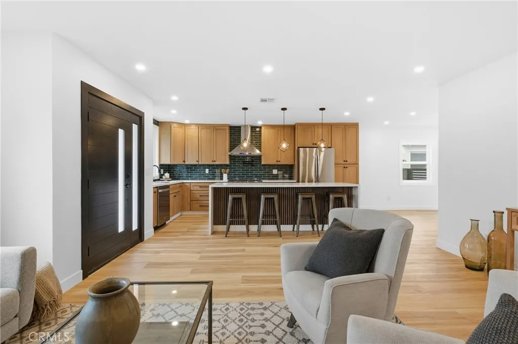 Welcome to this beautifully reimagined Santa Monica residence, thoughtfully renovated inside and out with quality finishes and modern upgrades throughout. Ideally located near the best of the Westside, this home offers close proximity to parks, dining, beaches, and access to the Santa Monica school community. The exterior has been masterfully reimagined to deliver striking curb appeal and refined sophistication. Fresh designer paint, new energy-efficient windows, custom exterior doors, and a new garage door set the tone for the home’s elevated aesthetic. A tiled entry path welcomes you in with understated elegance. The private backyard retreat features an expansive concrete patio and a custom wood pergola an ideal setting for elevated entertaining or serene relaxation. Lush hedges provide natural privacy, while a newly installed AC system ensures year-round comfort. The garage has been thoughtfully upgraded with sleek epoxy flooring, refined interior finishes, enhanced lighting, a new window, and a new entry door creating a polished and versatile space. Inside, the residence has been completely transformed with a cohesive modern design. Wood vinyl flooring flows throughout and a fully integrated recessed lighting. The designer kitchen serves as the heart of the home, featuring custom cabinetry, quartz countertops, brand-new appliances, and statement island lighting that blends form and function beautifully. A contemporary electric fireplace anchors the living space with warmth and ambiance, while sliding doors create effortless indoor-outdoor flow to the dining area. Both bathrooms have been elegantly redesigned with spa-inspired finishes. The secondary bath showcases a beautifully tiled tub surround and elevated fixtures. The primary suite offers a tranquil retreat with a custom vanity, designer lighting, a walk-in tiled shower, and a skylight that bathes the space in natural light. This turnkey residence seamlessly blends modern luxury and an exceptional Santa Monica location a rare opportunity to own a meticulously renovated move in ready home in one of the Westside’s most coveted communities.