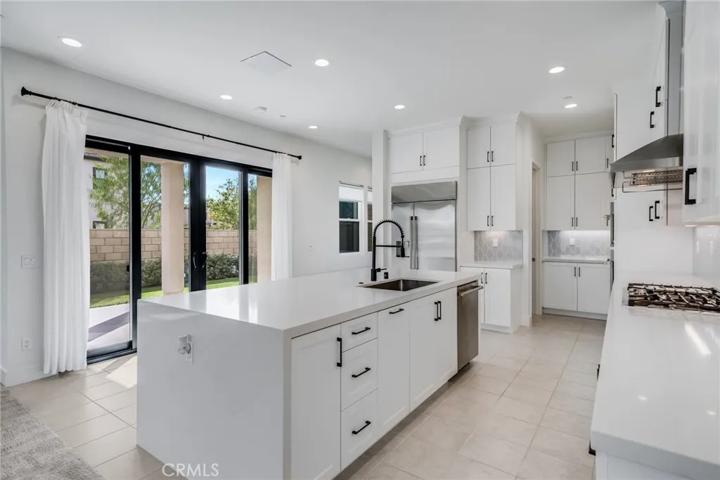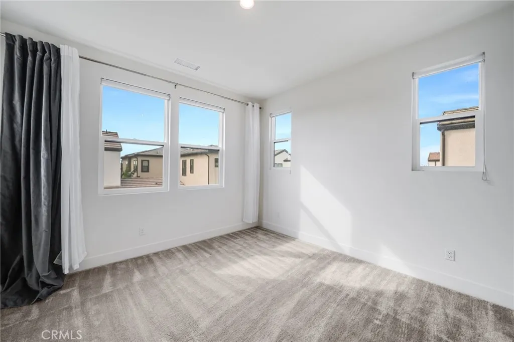 Corner Unit Detached Two-Level Home with paid-off solar panels in Rise Park at Great Park, Irvine! This beautifully designed 5-bedroom, 4.5-bathroom home features a bright, open-concept layout. The living room opens to the front yard through sliding glass doors, allowing for abundant natural light. The kitchen is equipped with an upgraded stove with ambient lighting, a built-in refrigerator, and a pantry with a prep counter. The first floor offers a private bedroom suite and a powder room. Upstairs, you’ll find a spacious loft with built-in cabinets and a large primary suite complete with a private balcony. Secondary bedrooms are well-lit and share two full bathrooms. Residents enjoy access to Great Park amenities, including parks, trails, pools, and sports facilities, as well as the award-winning Irvine Unified School District. Conveniently located within walking distance to Solis Park School and Portola High School.