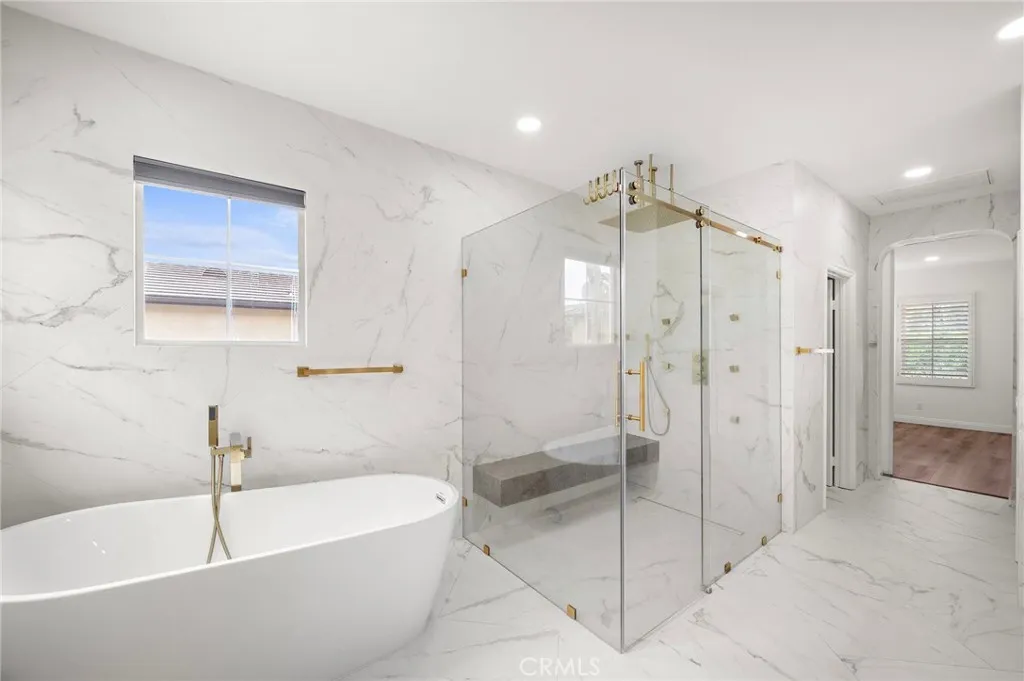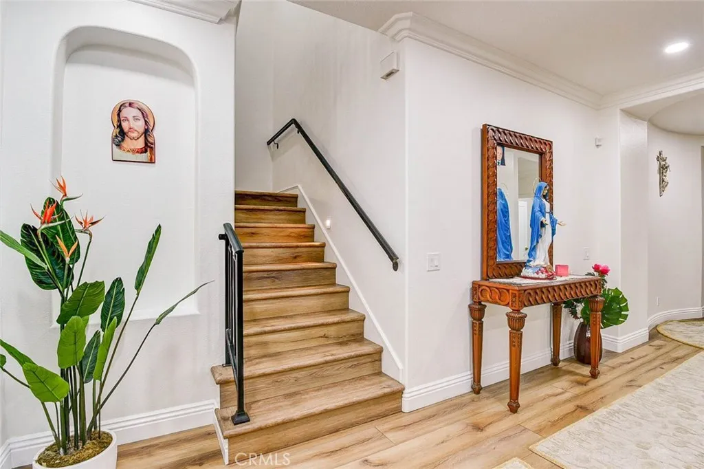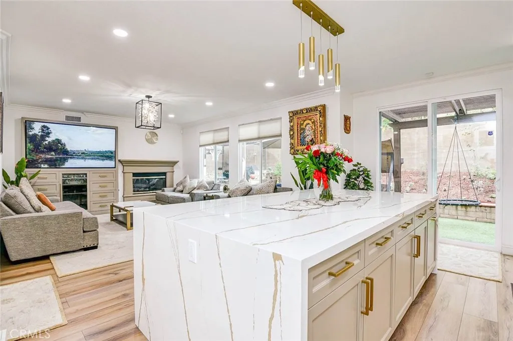 Meticulously remodeled luxury residence located in the highly desirable Northpark Square community of Irvine. Situated on a quiet cul-de-sac, this stunning home offers approx. 3,318 sq ft of refined living space with 4 bedrooms and 3 bathrooms. Elegant marble flooring and rich wood finishes flow throughout, including the staircase. Chef-inspired kitchen features top-of-the-line Thermador appliances: 6-burner gas range with grill, dual ovens, microwave, dishwasher, and built-in refrigerator with ice maker, plus abundant storage. Five-star hotel–inspired primary suite offers dual walk-in closets and a spa-like ensuite with smart automatic toilets. Multiple living areas include formal living and dining rooms, spacious family room, versatile downstairs room ideal for guest suite or theater, and upstairs loft perfect for home office. Paid-off solar system with Tesla battery, water softener, second-floor laundry, dual A/C units, security cameras, and two fireplaces (one on each level). Three-car garage with remote access. Professionally landscaped backyard ideal for entertaining. Prime location near award-winning schools, UCI, fine dining, shopping, I-5 freeway, and 241 toll road. Low-traffic cul-de-sac living at its finest. NO Mello-Roos.