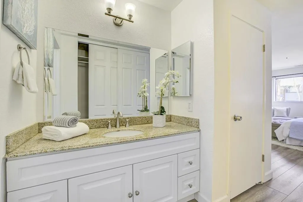 Gorgeous Lakeview Terrace condo nestled among peaceful outdoor spaces. Open floorplan with two spacious primary bedrooms, each with fully remodeled baths, one with a deep soaking tub, the other a custom-built shower. Updated kitchen features soft close cabinets, stainless steel appliances, and quartz countertops. Plank floors, white brick fireplace, and bright east-facing windows create a warm, inviting atmosphere. In-unit washer/dryer, upgraded electrical panel, and assigned garage parking complete the home. Step outside to a serene patio with storage, community pool & hot tub, scenic paths, and direct access to Almaden Lake Park with playgrounds, bocce courts, and trails. Conveniently located near Oakridge Mall, Whole Foods, Trader Joes, Costco, TJ Maxx, many restaurants, and more, with easy access to HWY 85 and 87 for an effortless commute. Comfort, nature, and convenience all in one home. Inquiry directly for special buyer incentive!