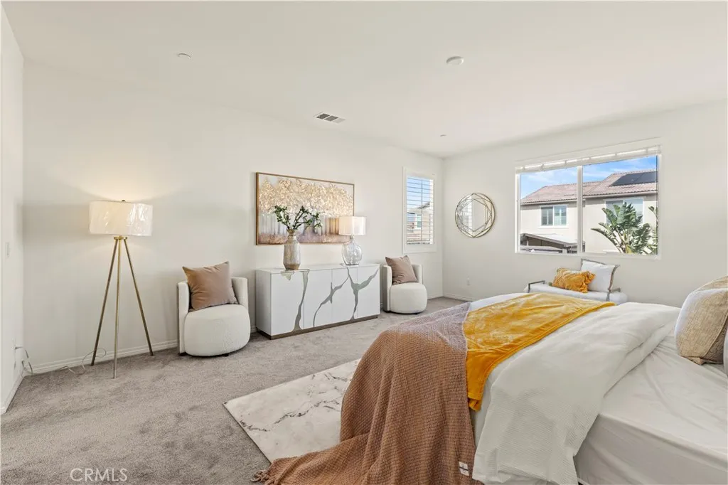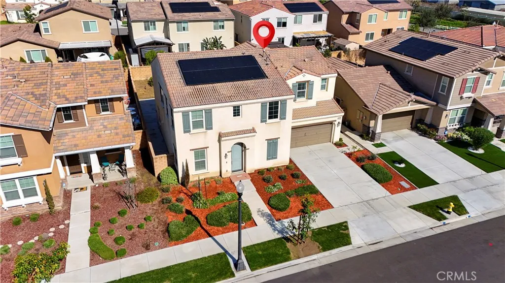 Welcome to this stunning modern home in the desirable Landmark community, built in 2021 by Lennar and impeccably maintained. Offering approximately 3,173 sq. ft. of bright open living space, this residence features one of the largest floor plans in the neighborhood with abundant natural light and plantation shutters throughout. The open-concept layout includes a spacious living and dining area and a gourmet kitchen with an oversized center island, perfect for entertaining. The dining area opens directly to a beautifully landscaped backyard, ideal for relaxing or hosting gatherings. This home offers 5 bedrooms and 3.5 bathrooms, including a convenient main-floor bedroom with a private en-suite bath—perfect for guests or multi-generational living. Upstairs features a large loft, additional bedrooms, and a dedicated laundry room. Additional highlights include a solar system, tankless water heater, and a spacious 3-car garage. Prime location near parks, Costco, Ontario Mills, 99 Ranch Market, Ontario International Airport, and major freeways. A rare turnkey opportunity—schedule your private showing today!
